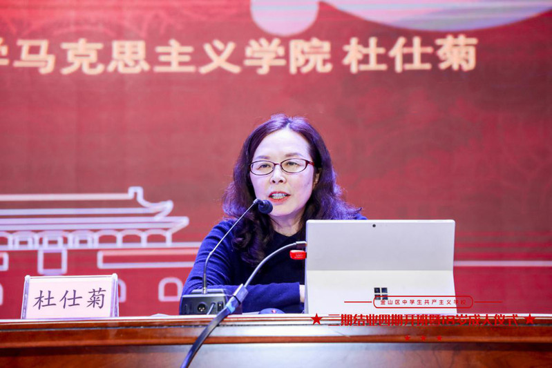 12月5日下午,必赢国际437官网与上海市金山区中学生共产主义学校在华东师范大学第三附属中学艺术剧院进行共建签约仪式暨第四期共产主义培训开班仪式。团市委副书记邬斌,金山区委常委、区关工委主任白锦波、必赢国际437官网院长杜仕菊,区委组织部副部长、区委老干部局局长顾美萍,区教育工作党委书记顾宏伟,团区委书记张敏,副书记舒加敏及相关领导、老师,学院“平语近人”宣讲团成员,共产主义学校学员等出席活动。