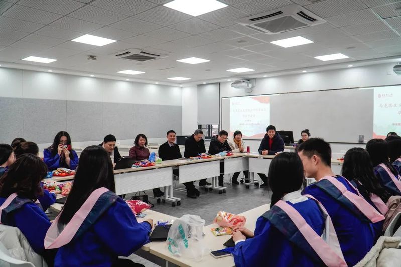 座谈会上,各位导师轮流发言,向圆满完成学业的学子表示热烈的祝贺,并提出了殷切的希望与要求。各位导师嘱托毕业生在踏入社会后要学会包容,正确处理与他人的关系,并学会缓解工作、生活中出现的焦虑情绪。导师们表示无论何时,马院都是毕业生们永远的家,欢迎各位毕业生常回家看看。导师发言结束后,毕业生依次发言表达了自己的感恩之情以及对未来的憧憬。