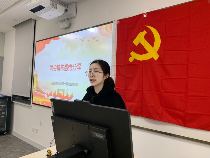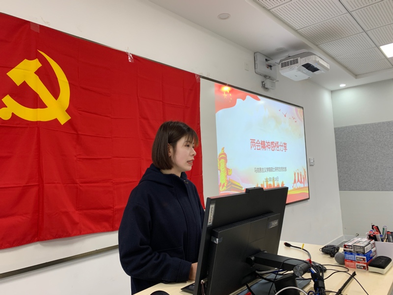 会议首先学习了两会精神,两位同学进行了感悟分享。娄芹芹在分享中表示,乡村振兴,是今年全国两会的高频词。作为一名入党积极分子,势必要在新征程上奋力书写乡村振兴的时代画卷,“厉兵秣马,蓄势待发”,为实现社会主义现代化远景目标添砖加瓦。蔡晓婷表示,身为一名马理论专业的学生党员,要把全国两会精神迅速深入地贯彻落实到具体学习和工作当中,努力践行“变、干、实”,成为时代的见证者和最美奋斗者,为实现“十四五”目标贡献智慧和力量。