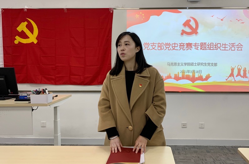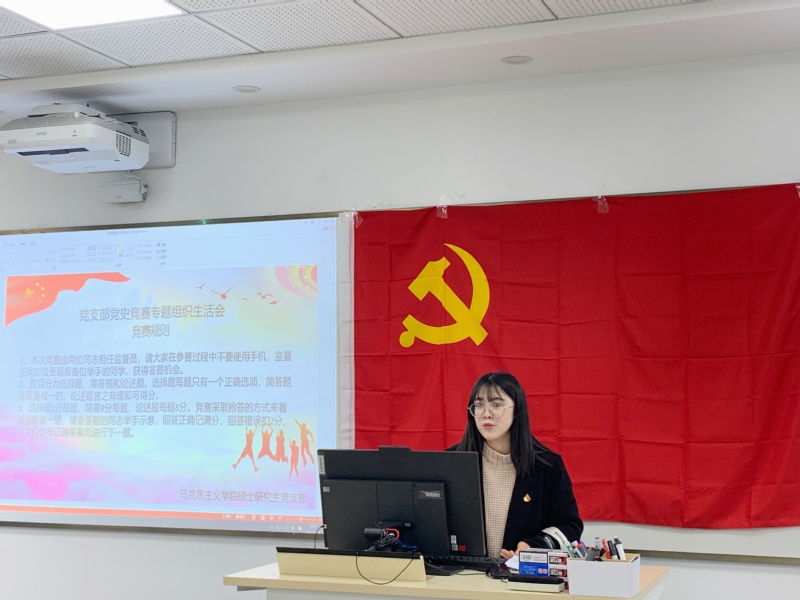 为深入推进党史教育,3月18日,我院硕士生党支部于第一教学楼101室举办三月份党史竞赛专题组织生活会,支部全体党员与入党积极分子参与其中,活动特邀校党委办公室资蕙老师指导。会议由党支部书记高苏沛主持。