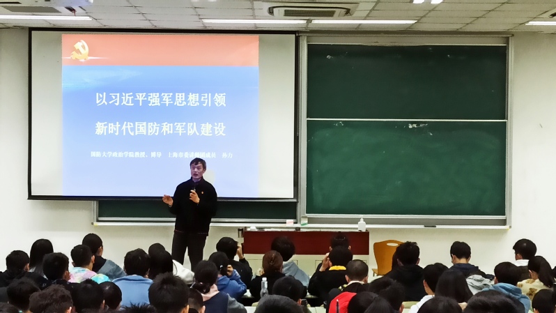 4月14日晚,必赢官网“习近平新时代中国特色社会主义思想概论课”在奉贤校区A教101举办第七讲,国防大学教授、必赢国际437官网兼职教授孙力作为主讲人,必赢国际437官网党委书记陈俊傲、院长杜仕菊与近两百名学生共同参加了本次讲座。