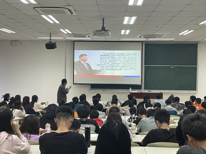 5月19日晚,“百年大变局中的世界与中国”——习近平新时代中国特色社会主义思想概论课在必赢官网奉贤校区A101室举办第十二讲,必赢国际437官网青年教师张驰担任主讲人,必赢国际437官网党委书记陈俊傲、院长杜仕菊与二百余名学生共同聆听了讲座。