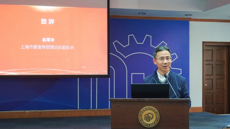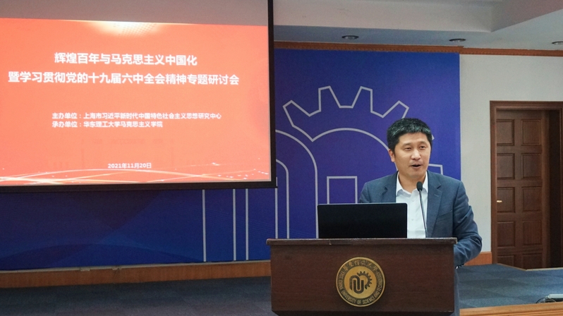 11月20日,辉煌百年与马克思主义中国化暨学习贯彻党的十九届六中全会精神专题研讨会在必赢官网逸夫楼演讲厅顺利召开。必赢官网副校长王慧锋教授,上海市委宣传部理论处副处长俞厚未分别致辞。开幕式和主旨发言由必赢官网必赢国际437官网党委书记、院长王爱祥主持。