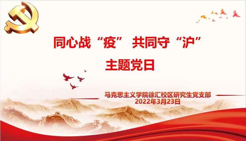 为进一步凝聚起学生党员同心战“疫”的力量,3月23日和3月27日,学院徐汇校区和奉贤校区两个研究生党支部分别开展了“同心战‘疫’”,共同守‘沪’”和“致敬战‘疫’先锋”的线上主题党日,学院党委副书记杨倩、副院长汪斌锋一同参加。