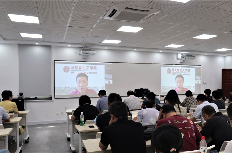 首先,王爱祥结合学院新学期重点工作带领全体教师学习了由教育部等十部门印发的《全面推进“大思政课”建设的工作方案》。他提出了下半年学院工作的“四个挑战”,围绕“筑牢两个基础”与“抓住两个机遇”,展开对新学期工作的展望及部署。他指出,要加快思政课教师选聘工作,夯实学院高质量建设根基;要提升思政课课程质量,筑牢学院内涵式发展基础;要把握思政课建设调整机遇,狠抓教师教学能力提升;要争创新一轮示范马院,抢抓新时代马院建设先机。