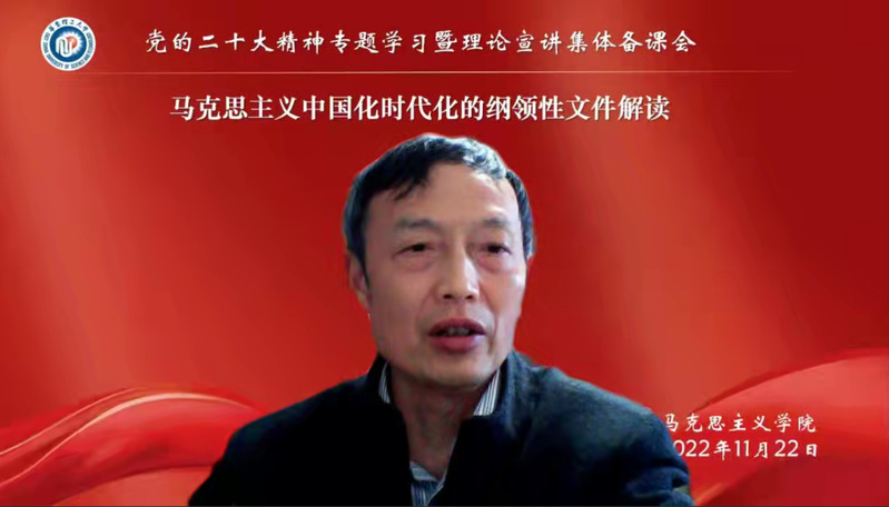 为深入学习贯彻党的二十大精神,必赢国际437官网于11月22日下午召开“党的二十大精神专题学习暨理论宣讲集体备课会”。会上,中共上海市委宣讲团成员、党的二十大市委宣讲团成员孙力教授作主题为“马克思主义中国化时代化的纲领性文件解读”的专题讲座。讲座由学院党委副书记兼纪委书记卢杨主持,学校“党的二十大精神理论宣讲团”成员及必赢国际437官网全体师生参加。