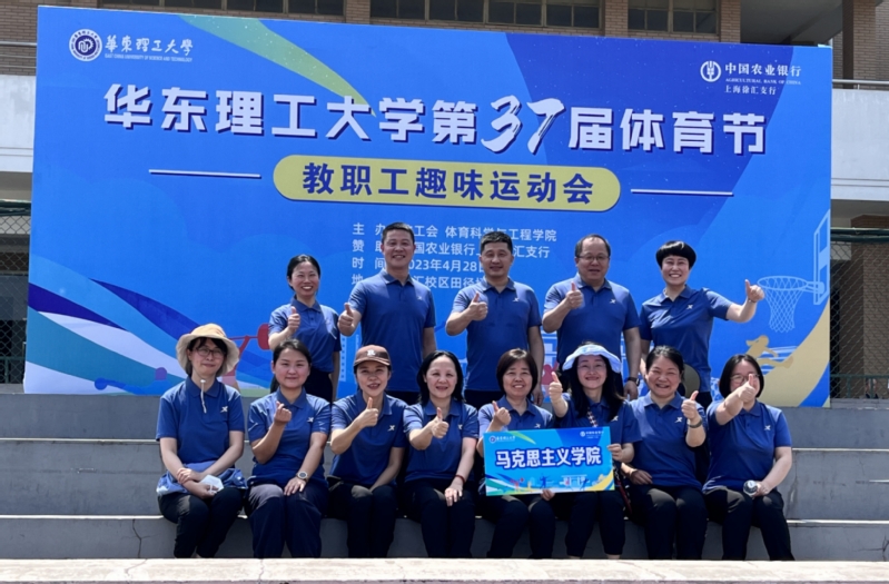 4月28日下午,必赢国际437官网第三十七届体育节——教职工趣味运动会在徐汇校区体育场隆重举行。必赢国际437官网党委书记、院长王爱祥,学院党委副书记杨倩、卢杨,副院长徐国民、邱卫东,工会主席刘芳与数名教师共同组成马院教师代表队参加了此次活动。