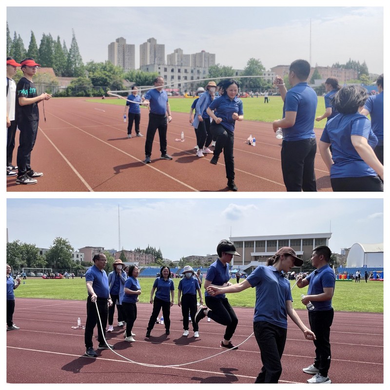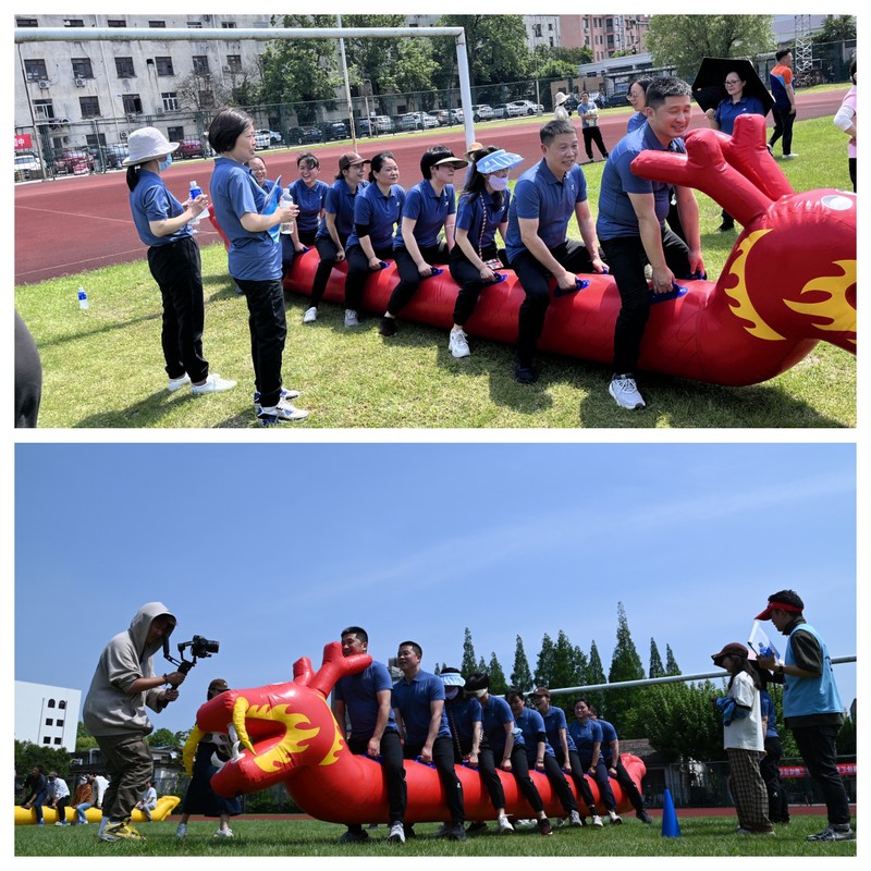 学院代表队分别参与了四个项目的比赛:锁定新目标、旱地龙舟、合力跳长绳、投篮机接力赛。