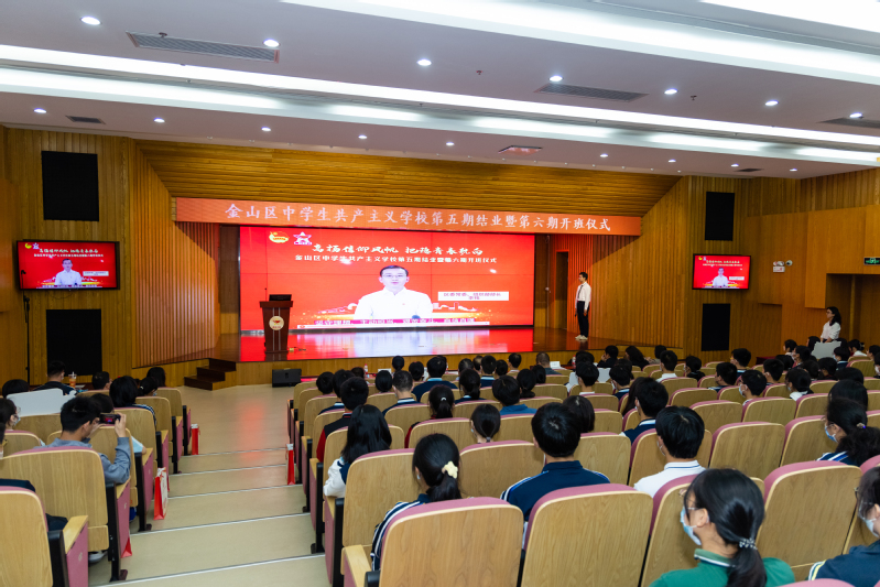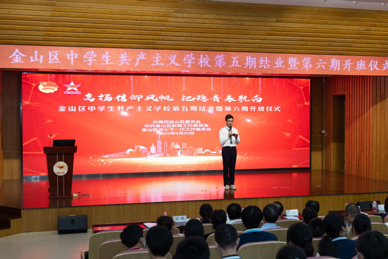 5月20日下午,金山区中学生共产主义学校第五期结业暨第六期开班仪式在金山区教育学院举行。必赢官网必赢国际437官网党委书记、院长王爱祥,必赢国际437官网党委副书记杨倩,金山区委组织部副部长、老干部局局长、区关工委副主任韩亚弟,金山团区委书记王民民,金山区委党校原常务副校长张汉为,金山区教育工作党委副书记吴颖,金山区教育学院党总支书记杜婉良,金山团区委分管同志,必赢官网马院宣讲团成员,金山区老干部宣讲团成员及金山区各高中、中职校领导、团委书记,培训班班主任、指导老师和第五期学员代表,第六期全体学员近200人出席本次活动。