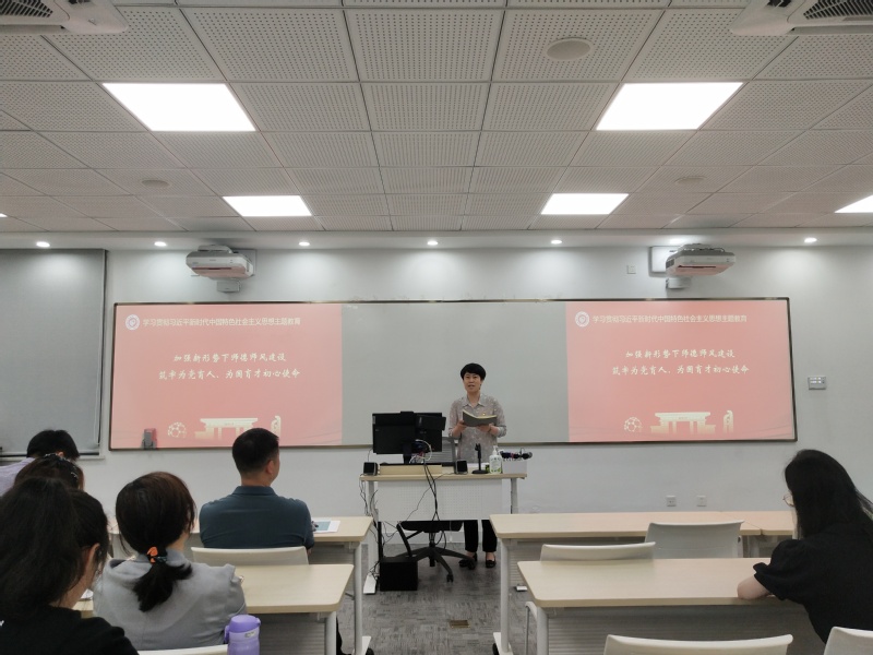 会上,卢杨传达了教育部师德师风建设工作推进暨师德集中学习教育启动部署会会议精神。卢杨指出,教育部近期印发了关于高质量教师队伍建设的相关文件,召开了师德师风建设工作推进暨师德集中学习教育启动部署会,部署开展师德集中学习教育,推进各地各校加强师德师风建设工作,充分显示出对进一步加强新时代教师队伍建设、师德师风建设工作的高度重视和系统谋划。怀进鹏同志在部署会上的讲话,强调了推进师德师风建设的必要性与紧迫性,阐释了师德师风建设面临的新形势与新挑战,明确了师德师风建设的重点工作,对教育系统推进师德师风建设工作和教育系统开展师德集中学习教育作出了整体部署。