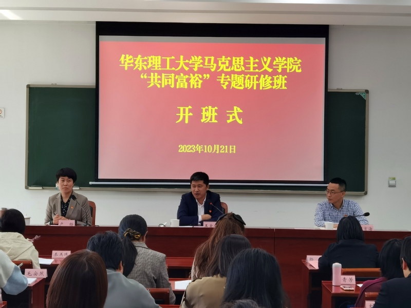 10月21日上午,学院“共同富裕”专题研修班开班式在浙江省委党校文欣校区103教室举行,仪式由学院党委副书记、纪委书记卢杨主持。浙江省委党校教育学院院长周育海对华理马院研修班一行的到来表示热烈欢迎,并系统介绍了浙江省委党校的基本情况与建设历程,表示将全力保障此次培训的质量和效果。学院党委书记、院长王爱祥作参训动员。他指出“思政小课堂”与“社会大课堂”的紧密连接意义重大,希望学院师生在此次研修中都能转变身份、虚心学习,沉浸体验、深入实践,理论链接、提升能力,遵规守纪、确保安全。
