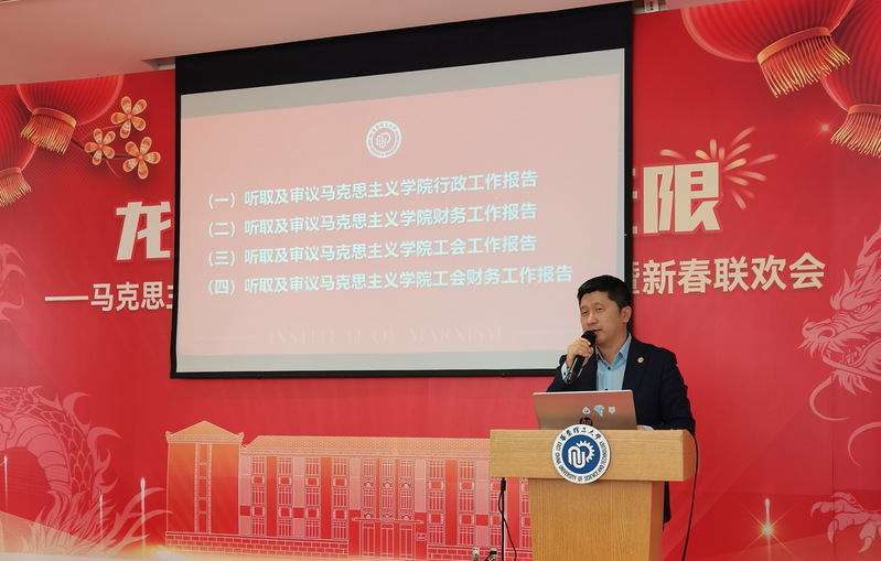 学院党委书记、院长王爱祥作学院行政工作报告和财务工作报告。他从“大思政课”建设、马克思主义理论后备人才培养、学科与科研、教师队伍、治理体系、国际交流与社会服务、文化建设等七个方面,回顾了2023年学院的相关工作和取得的成绩,剖析了学院发展所面临的新机遇和新挑战。他指出,2024年是马院内涵式高质量建设的关键之年,号召全院师生要以一级学科博士点申报、“大思政课”改革创新、思政课教师教学大比武等为契机,抢抓机遇、奋力一跳,为建设具有理工特色的高水平必赢国际437官网而团结奋斗。