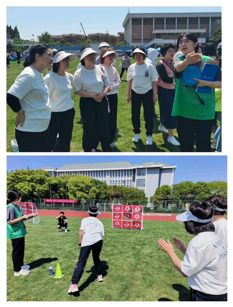 这个项目需要老师将手中的飞盘掷入不同分数的栏里,比较考验眼力和准度。比赛现场虽然有风的干扰,但老师们全神贯注、稳心定力,找准目标、奋力一搏,在八位老师的奋力拼搏下,马院代表队最终拿到了该项目第五名的好成绩。
