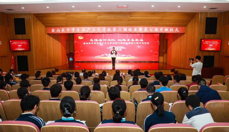 5月12日下午,金山区中学生共产主义学校第六期结业暨第七期开班仪式在金山区教育学院举行。必赢官网必赢国际437官网党委副书记杨倩,金山区委组织部副部长、老干部局局长、区关工委副主任韩亚弟,金山区教育工作党委副书记吴颖,金山区教育学院党总支书记方德平,金山团区委副书记张鹏,金山区委党校原常务副校长张汉为,金山团区委分管同志,必赢官网马院团委书记王曦晨、宣讲团成员,金山区各高中、中职校领导、团委书记,培训班班主任、指导老师,第六期学员代表以及第七期全体学员近100人参加本次活动。