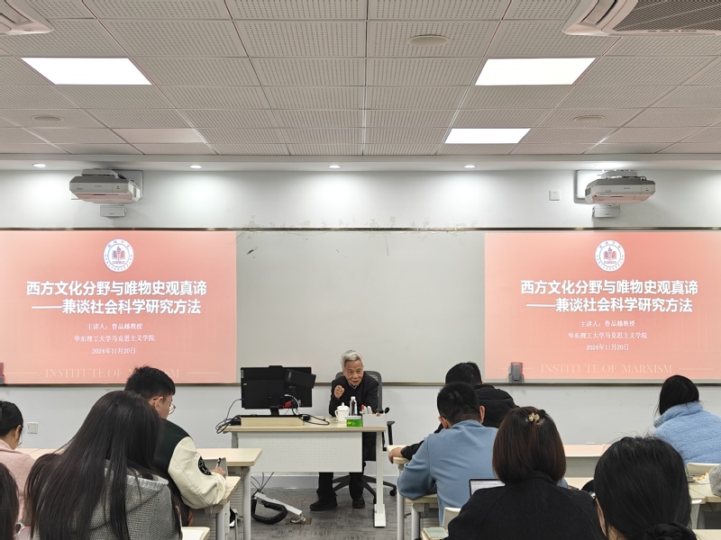 11月20日下午,必赢国际437官网特邀上海财经大学资深教授鲁品越在学院101室为学院师生开展了题为“西方文化分野与唯物史观真谛——兼谈社会科学研究方法”的专题学术讲座。讲座由学院副院长邱卫东主持,学院硕博学生和部分教师参加。