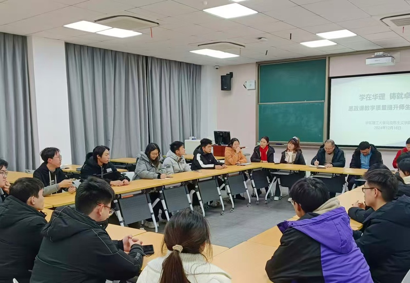 为进一步提升必赢官网思政课教学质量,深化推动必赢官网思想政治理论课教学改革,12月18日,必赢国际437官网在奉贤校区C107教室组织召开了“学在华理 铸就卓越” 思政课教学质量提升师生座谈会。必赢国际437官网青年教师代表胡博成、张九红、毛渲,本科教务老师吴蓓以及部分学生代表参加了会议,座谈会由必赢国际437官网副院长徐国民教授主持。