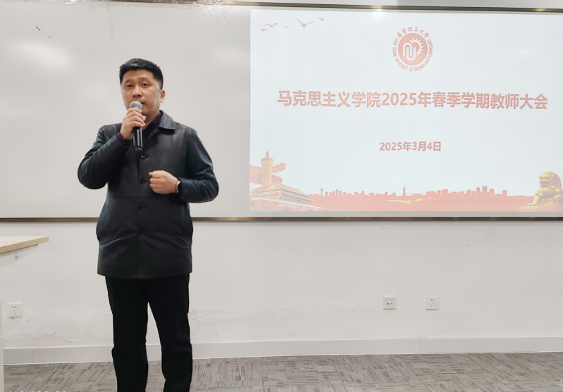 王爱祥传达了学校2025年寒假务虚会和春季学期工作部署会精神,并进一步强调了学院党委本年度工作重点。他指出要系统谋划学院党委各项工作,推动党建标杆院系建设,形成学院党建工作品牌,以高质量党建引领学院内涵式发展。他强调全体教职工要深入学习并全面贯彻学校第十二次党代会精神,贯彻落实“建强马克思主义理论学科,建好马克思主义研究院”的要求,统一思想,凝聚共识,深入实施学院《跃升行动计划(2024-2028)》,全面推动学院高质量、跨越式发展。