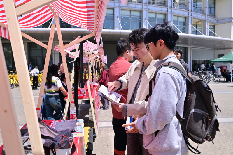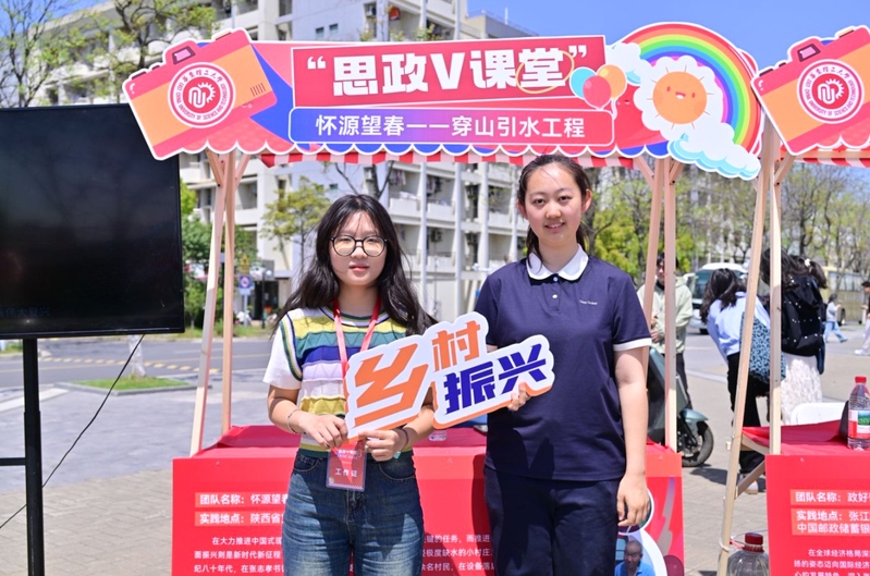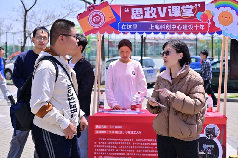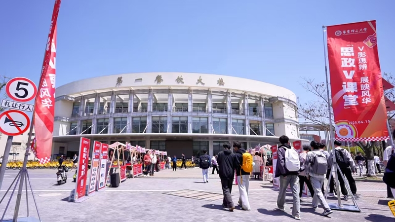 中午12时,奉贤校区一食堂风檐广场的“思政V课堂”成果路演展示区吸引了大批师生驻足。活动以“V影思辨·展映风华”为主题,集中展示了“思政V课堂”的优秀作品。“思政V课堂”启动实施三年,覆盖2022-2024级三个年级,16000余人次参与,累计完成12000多个Vlog作品,实践选题涵盖“重走信仰之路”“感悟发展成就”“品味文化魅力”“走进社会建设”“见证绿色发展”“上海五个中心建设”等大类。通过“行走的思政课”“思考的思政课”“我拍的思政课”,引导学生走出校门、深入基层、深入群众、深入实际,在社会实践中学以致用、知行合一。