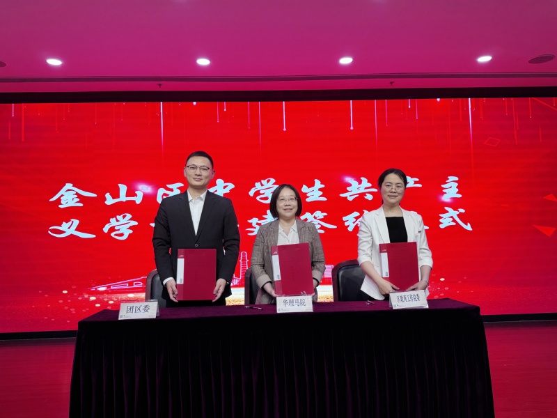 杨倩代表必赢国际437官网与共青团金山区委员会、金山区教育工作党委签订合作协议。三方将整合优质资源,构建“跨校”思政教育共同体,打造具有示范意义的青少年思想政治教育平台。自2020年合作以来,学院已为金山区中学生共产主义学校开发了多门精品课程,有效提升了“青马工程”的实施质量。