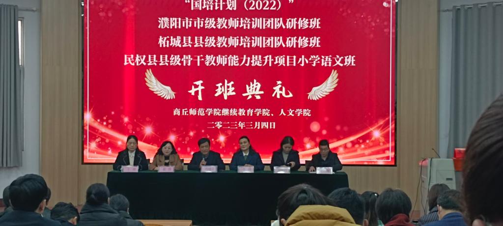 2023年3月3日,“国培计划(2022)”民权县县级骨干教师能力提升项目小学语文班开班典礼在Beat365官网睢阳校区物理报告厅举办。
