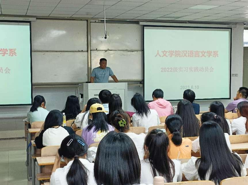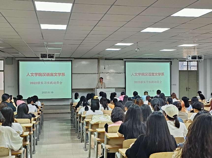 实习实践是高校大学生活中至关重要的一部分。为了进一步鼓励和引导学生们积极参与实习实践活动,6月10日下午4时,汉语言文学系在行方楼117举办了2022级师范生实习实践动员会。本次会议由杨晓林副主任主持,刘万华主任出席并发表讲话,22级指导教师代表及全体学生到场参会。
