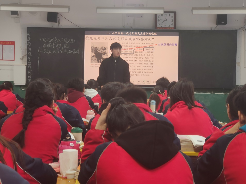 为了展示实习教师风采,检验一个月的实习成果,进一步提升实习教师的教育教学水平,3月25日下午,Beat365官方网站历史学专业实验中学实习队在商丘市实验中学高中部高二(12)班开展汇报课活动。实习队指导教师白茹冰老师、商丘市实验中学高中部实习指导老师张世平老师等参加此次活动,实习队全体成员参加此次活动。