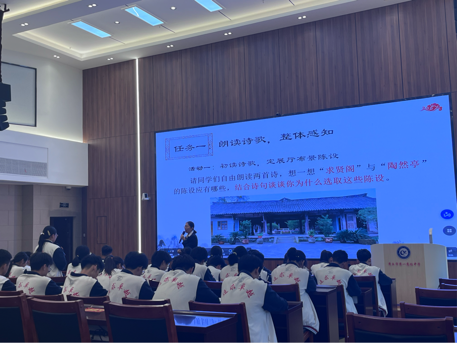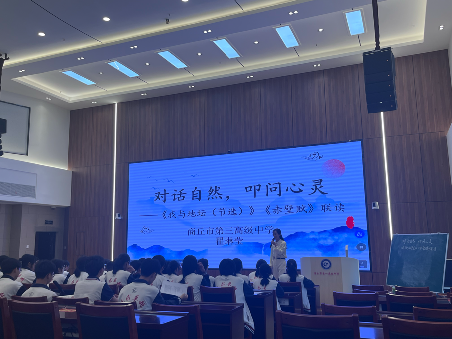 第三位老师讲授了“《我与地坛(节选)》《赤壁赋》联读”,从“赏析景物描写,把握作者思想情感的变化”“理解自然对作者的意义,学会从精神家园汲取生命力量”这两方面讲解,利用小组讨论的形式,引导学生相互交流,相互启发,巧妙地达到了教学的预期效果。