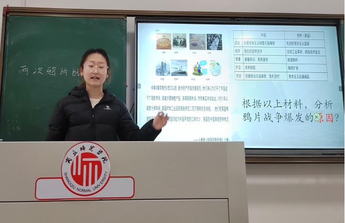 通过说课实践及评价,同学们对中学历史课程标准、教材分析及中学历史教学设计等有了更加深入的认识和理解,理论与实践相结合,提高了同学们的教材分析能力、教学设计能力、语言表达能力及课件制作能力、教学反思能力、教学评价能力等。
