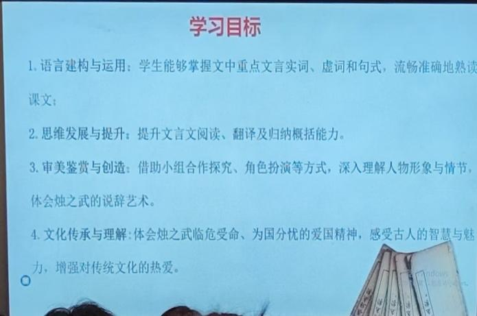 本次听课活动主要围绕《烛之武退秦师》《齐晋桓文之事》两篇文章展开。在课堂上,安振华老师以丰富的教学经验、精美的教学课件、生动的教学语言为坊员们展示了一节内容翔实、节奏有序的语文课。课后,在校会议室组织召开的听课总结会议上,安老师全面总结了本次活动的成果,并对之后的相关活动提出建议。