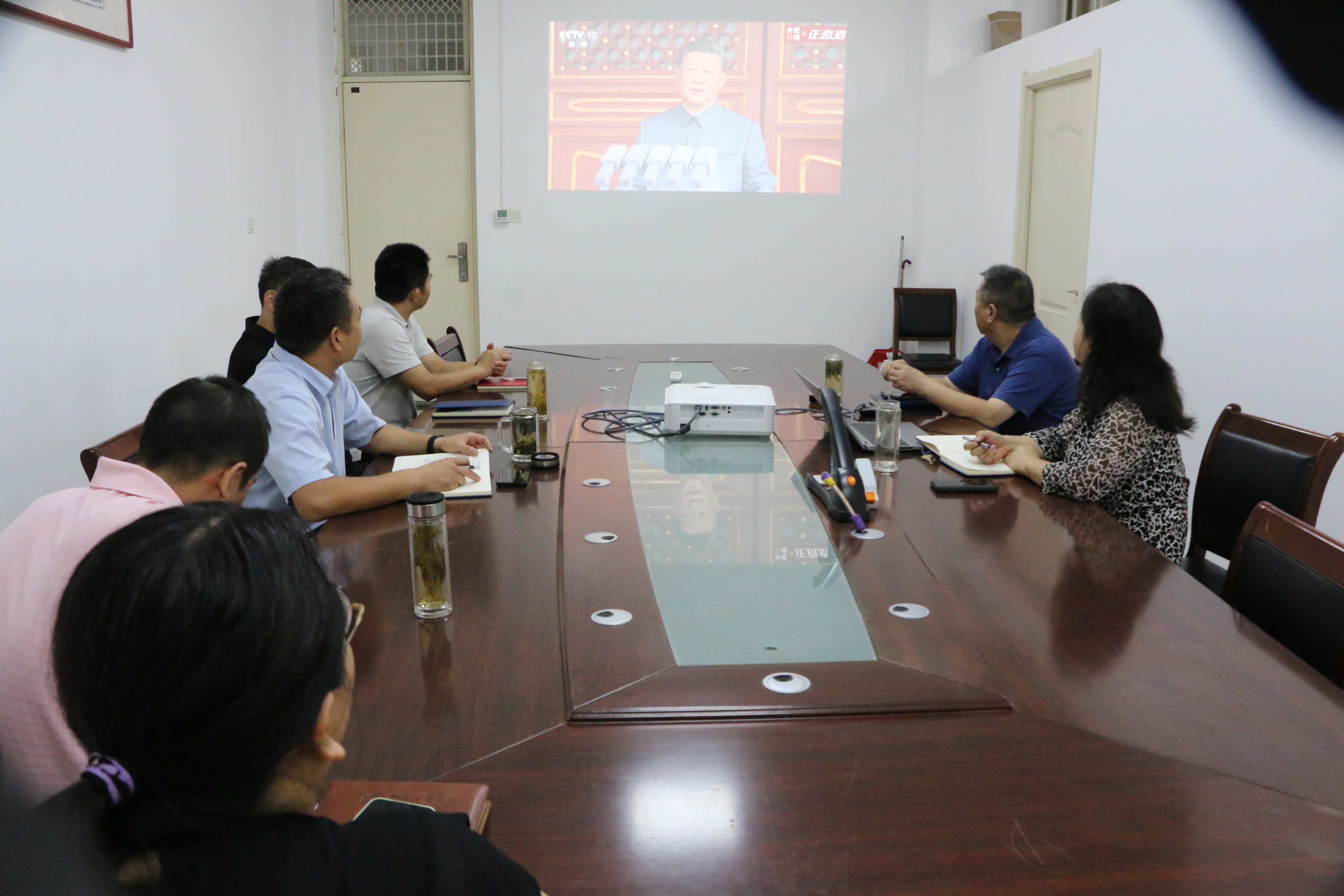 9月3日上午,Beat365官方网站党委理论学习中心组在汉梁楼212会议室集中观看了中国人民抗日战争暨世界反法西斯战争胜利80周年阅兵仪式直播。