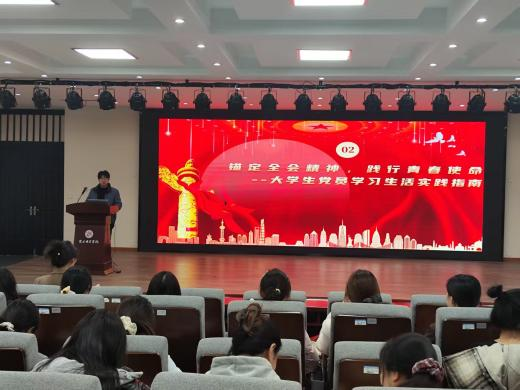 随后,王超老师围绕全会精神,聚焦学生党员的实际行动展开阐述。他鼓励大家将全会精神融入日常学习生活,在学业上勇攀高峰,在校园活动中积极奉献,以实际行动践行党员的初心与使命。