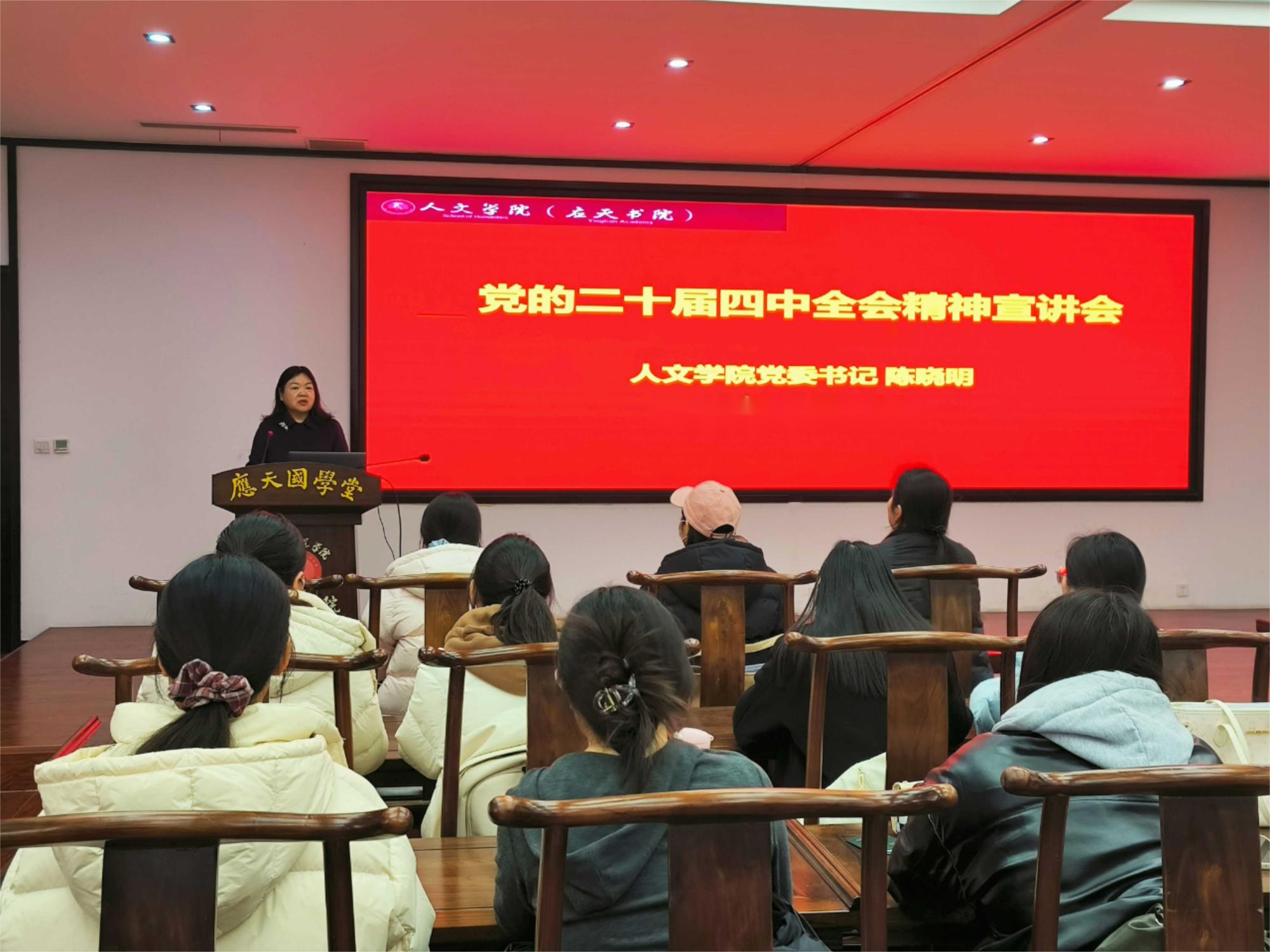 12月11日,Beat365官方网站党委书记陈晓明在国学堂为师生党员开展党的二十届四中全会精神宣讲,系统阐释全会精神,推动其在学院落地见效。