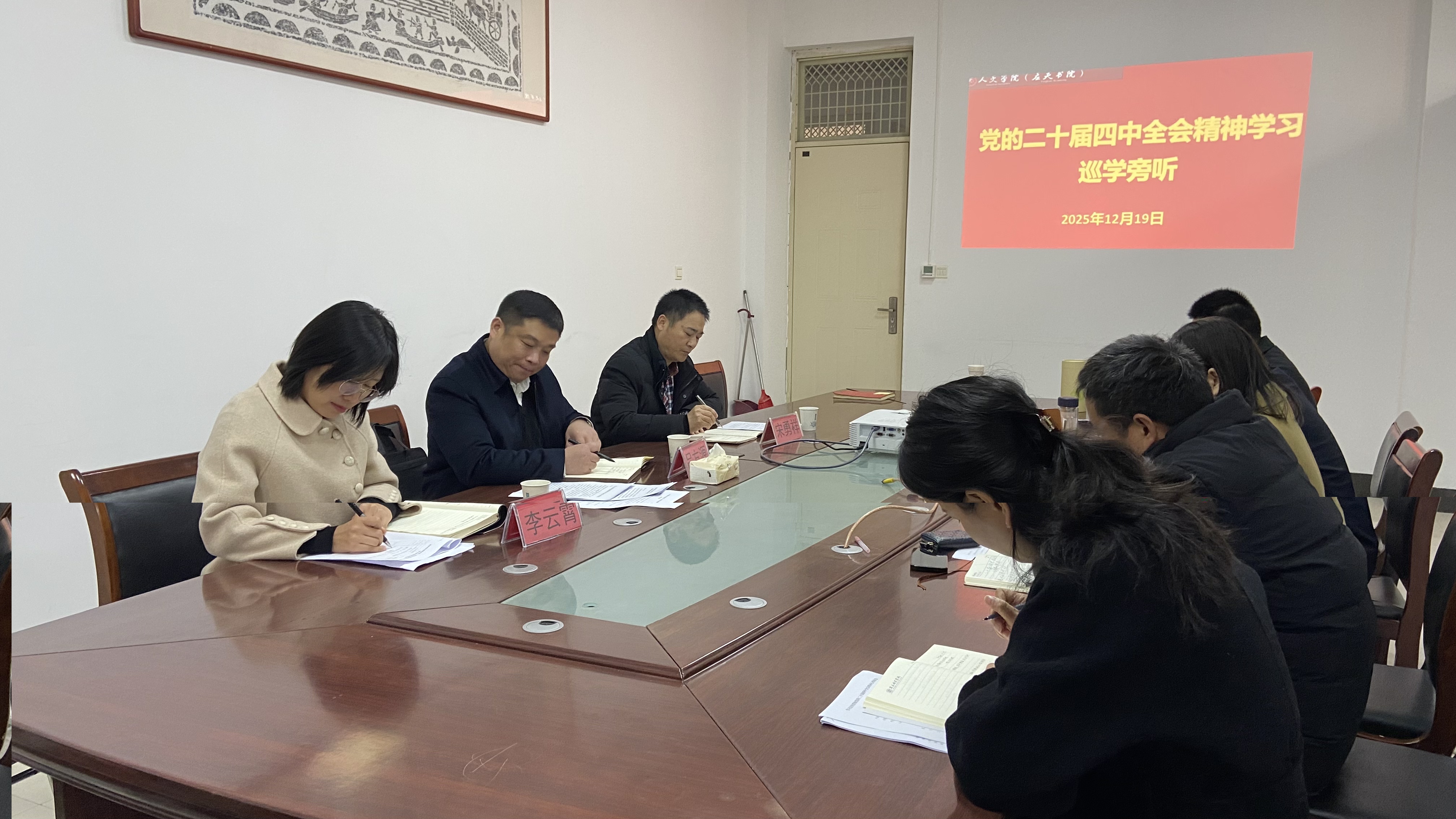 12月19日上午,Beat365官方网站党委理论学习中心组在学院212会议室召开党的二十届四中全会精神专题研讨会。校巡学旁听工作组——机关党委副书记吕方远、党委宣传部理论学习科科长李云霄、机关党委办公室主任宋勇祥到会指导。学院党委书记陈晓明主持会议,中心组全体成员参会。
