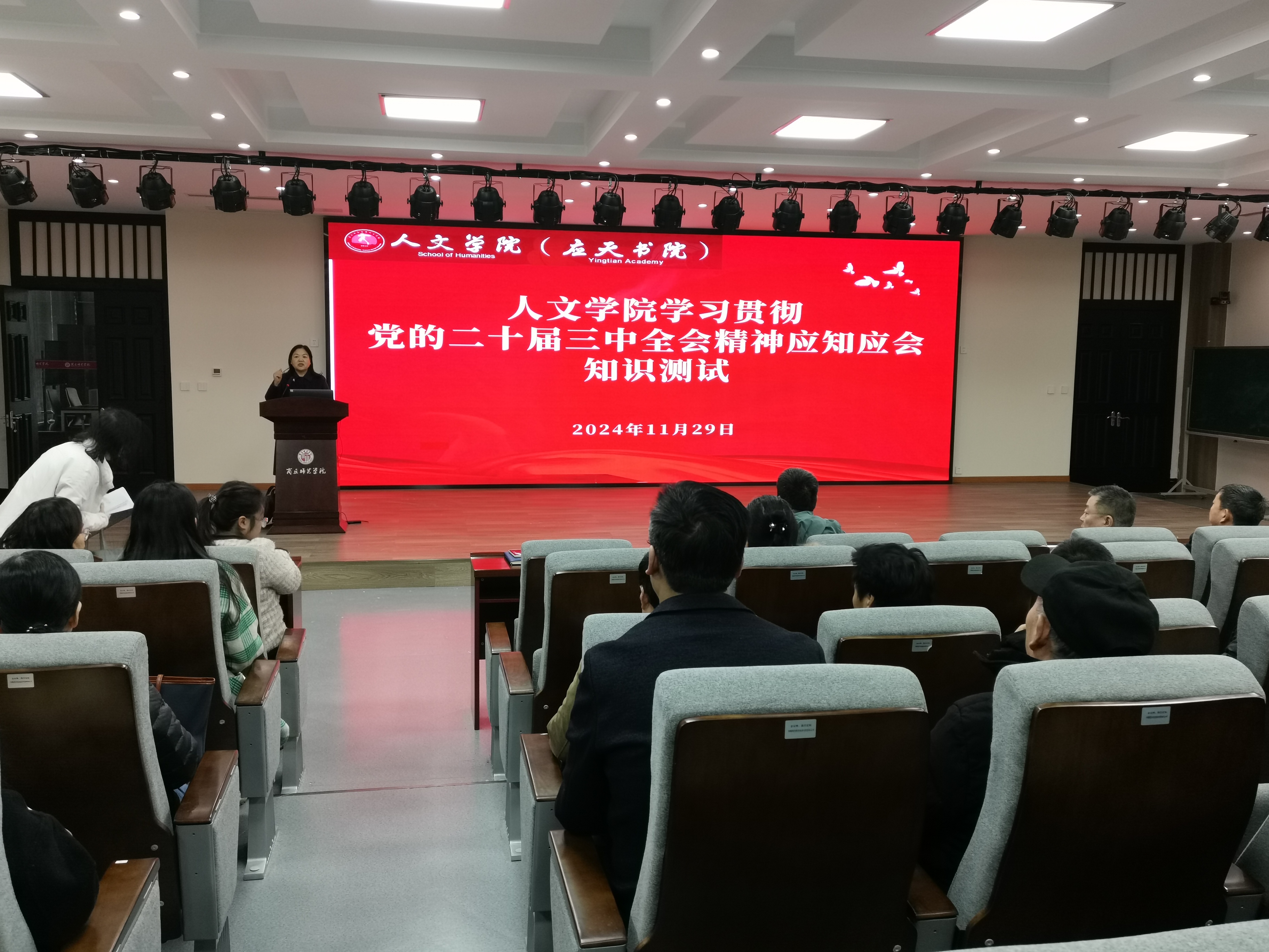 为帮助学院师生党员干部职工深入学习贯彻党的二十届三中全会精神,2024年11月29日,Beat365官方网站组织开展了党的二十届三中全会精神应知应会知识测试。学院全体师生党员参加。