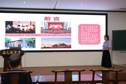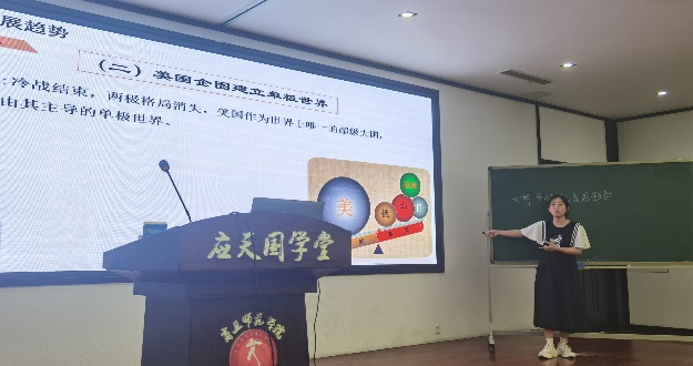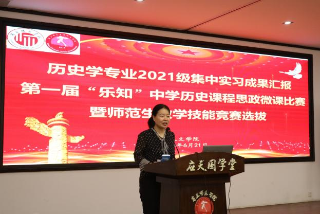 6月21日,历史学专业2021级集中实习成果汇报第一届“乐知”中学历史课程思政微课比赛暨师范生教学技能竞赛选拔在汉梁楼国学堂开展,21级历史学专业全体学生到场,十位指导老师担任评委。