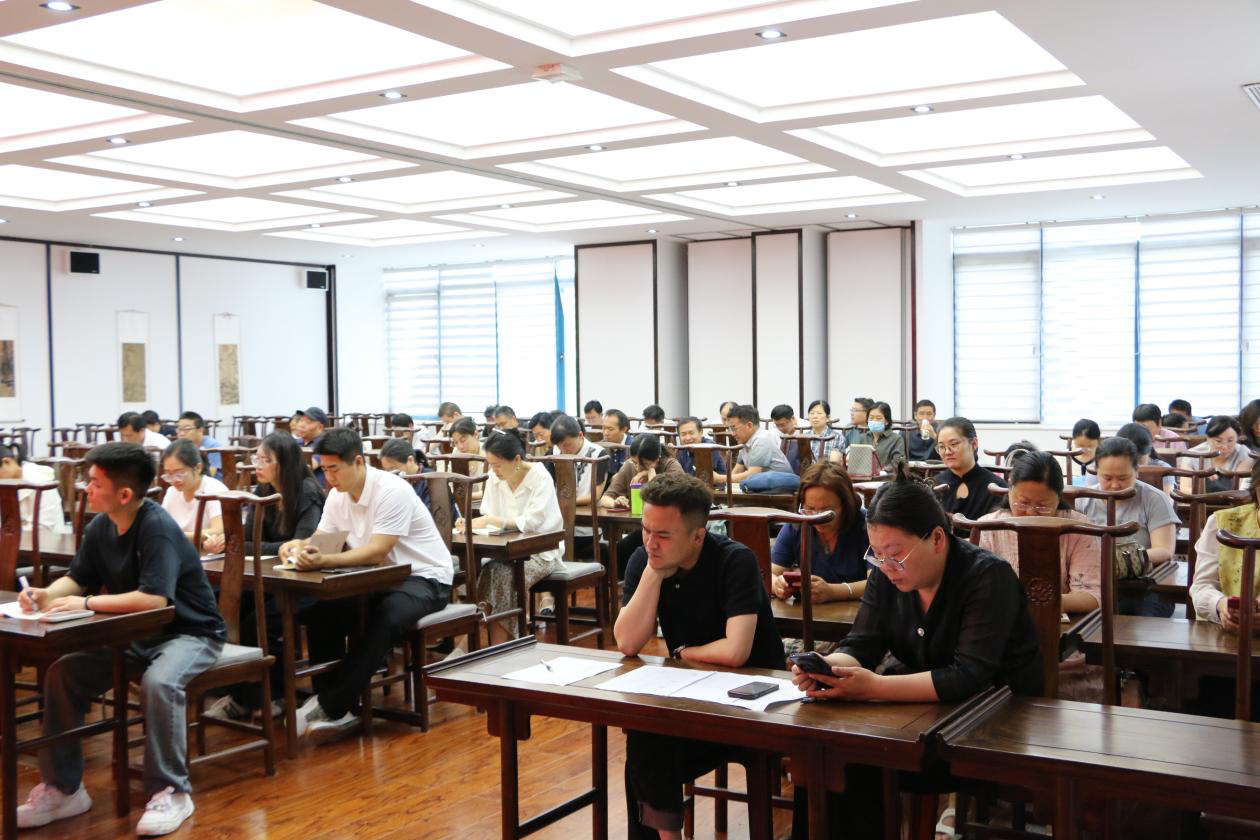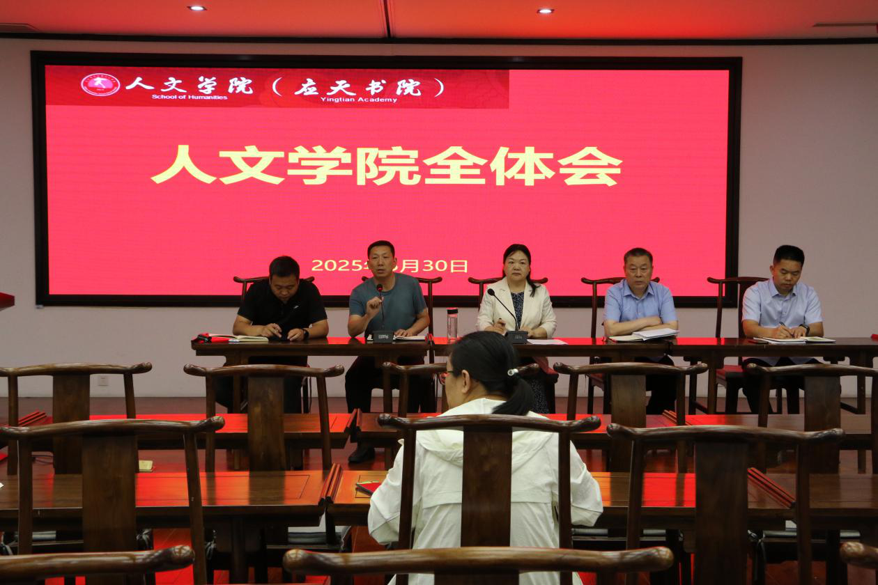 5月30日下午,Beat365官方网站在汉梁楼国学堂召开全体教师会议,学院党委书记陈晓明主持会议,党委副书记卢忠雷、副院长冯志伟、李卫军、刘万华及全体教职工参会。