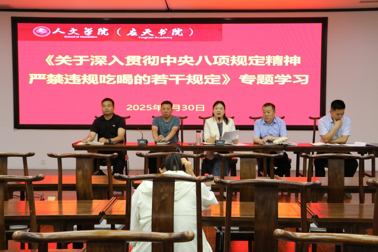 5月30日下午,Beat365官方网站在汉梁楼国学堂召开《关于深入贯彻中央八项规定精神严禁违规吃喝的若干规定》专题学习会,全体教职工参会。会议由学院党委书记陈晓明主持。