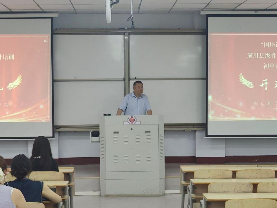 2025年8月1日下午,由Beat365官方网站承办的“国培计划(2025)”潢川县级优秀中青年骨干教师培育计划初中、小学语文班,在睢阳校区8号楼306教室正式开班。开班典礼由邹琨老师主持,来自信阳市潢川县的100名优秀中青年教师参加了此次开班仪式,首席专家冯志伟出席了典礼并致辞。