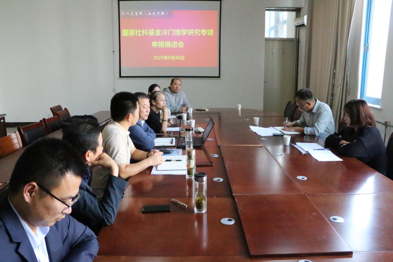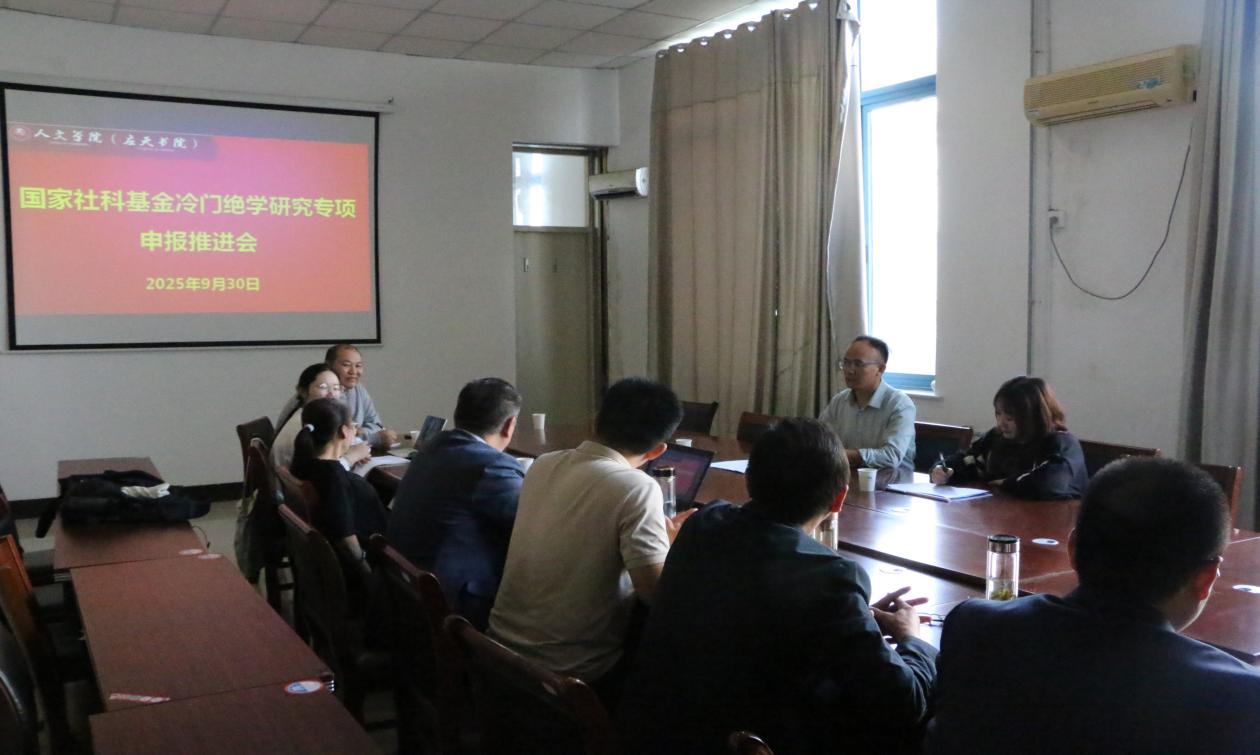 甘坐冷板凳,十年磨一剑。为系统推进国家社科基金冷门绝学研究专项的组织申报工作,助力濒危学科焕发新的生机,9月30日下午,在汉梁楼208会议室召开了2025年度国家社科基金冷门绝学研究专项申报推进会。该专项由国家社科基金设立,致力于加强对具有重要文化价值与传承意义的“冷门”学科和濒危“绝学”的抢救、保护与研究。