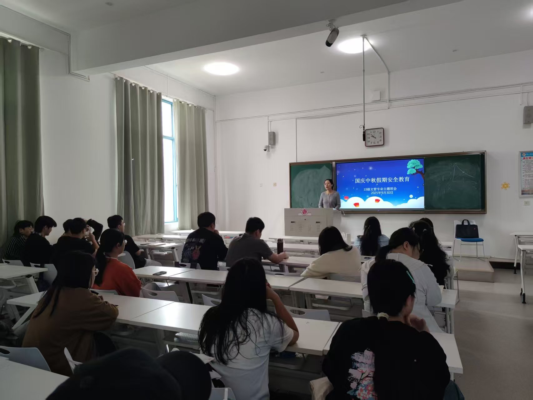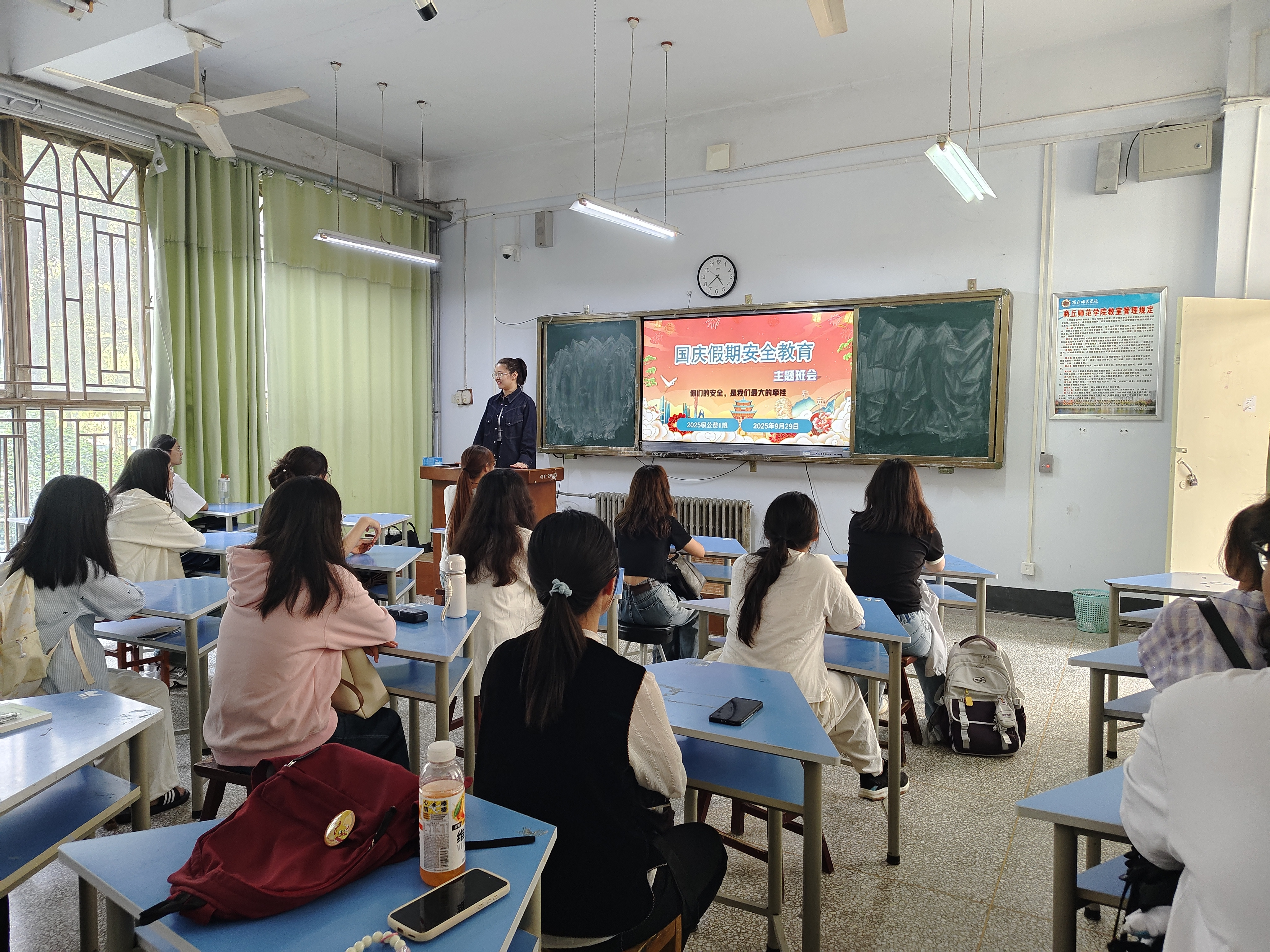 班会期间,班主任们围绕国庆期间安全出行、人身财产安全防护、防诈骗宣传教育、心理健康教育、留校学生安全等诸多方面进行提醒,并结合典型案例进行警示教育,强调假期安全的重要性。