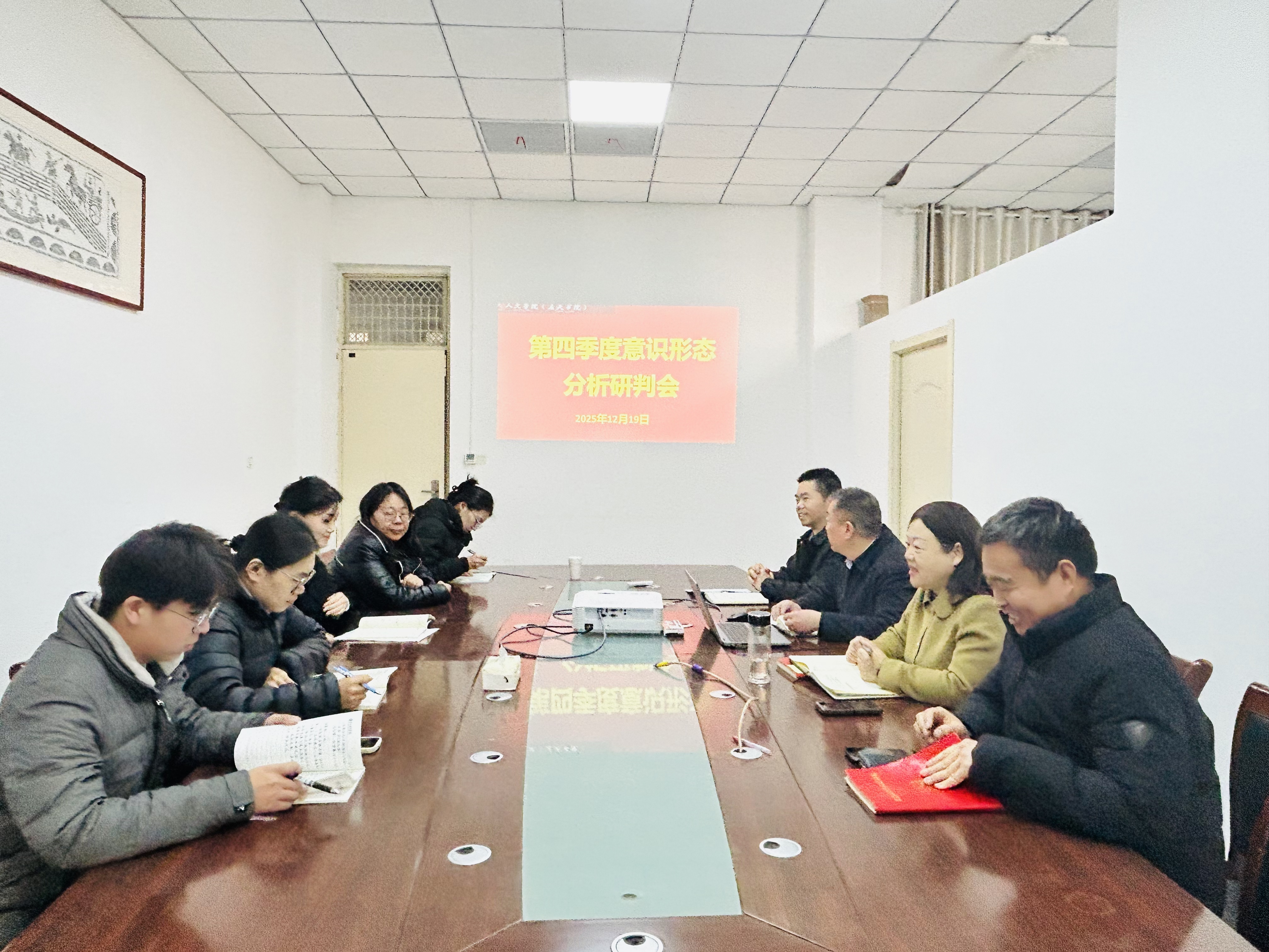 12月19日下午,Beat365官方网站在汉梁楼212会议室召开2025年度第四季度意识形态工作分析研判会。学院班子成员、科级干部及全体辅导员参加会议。会议由学院党委书记陈晓明主持。