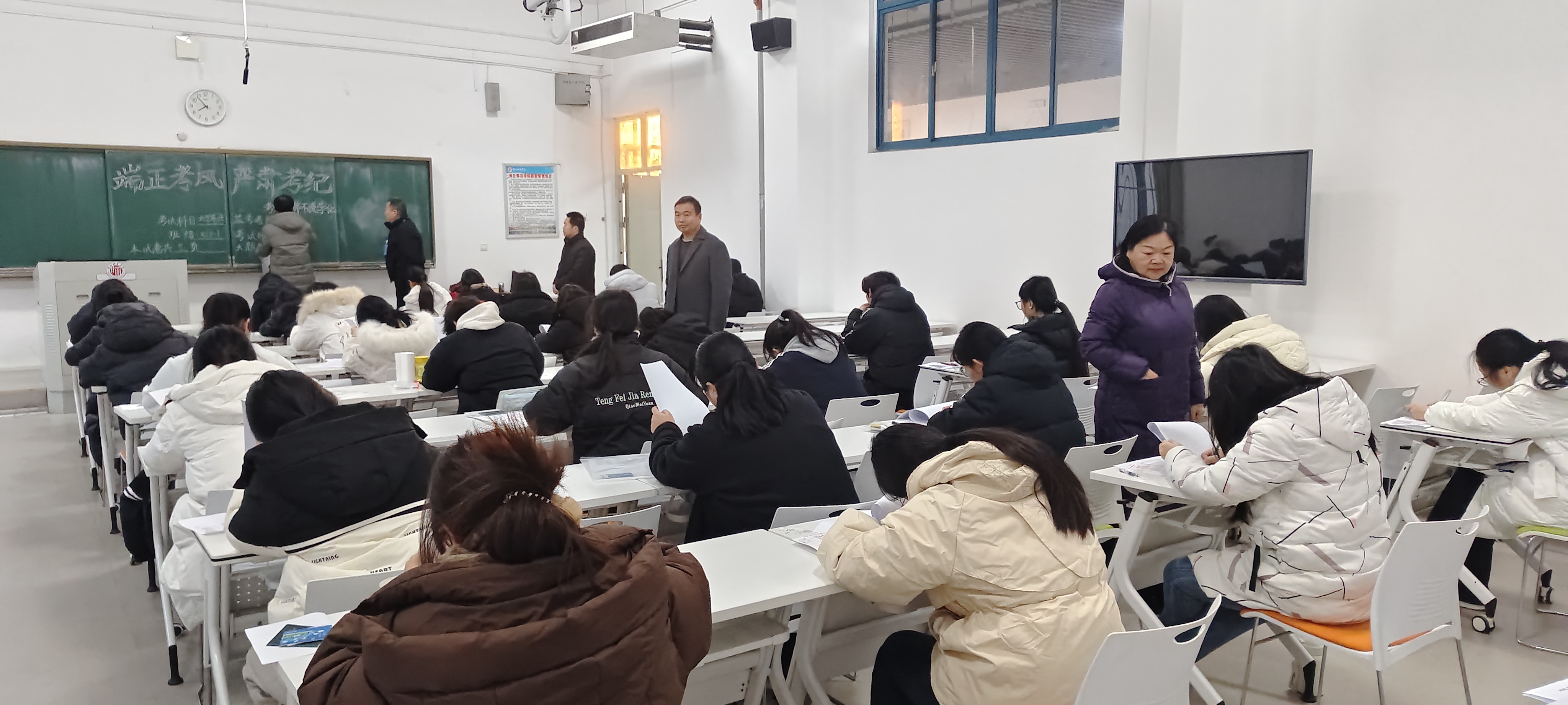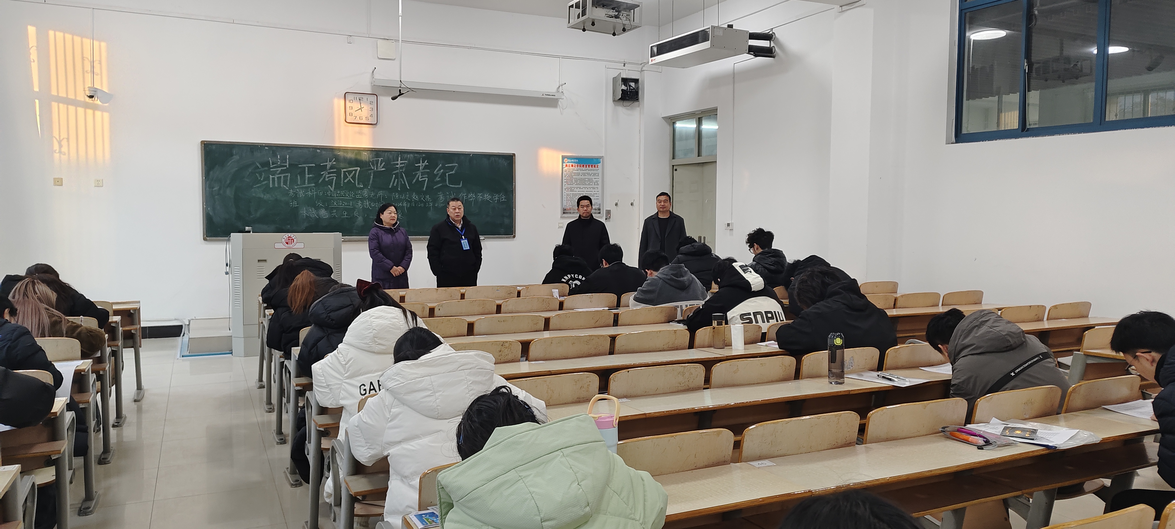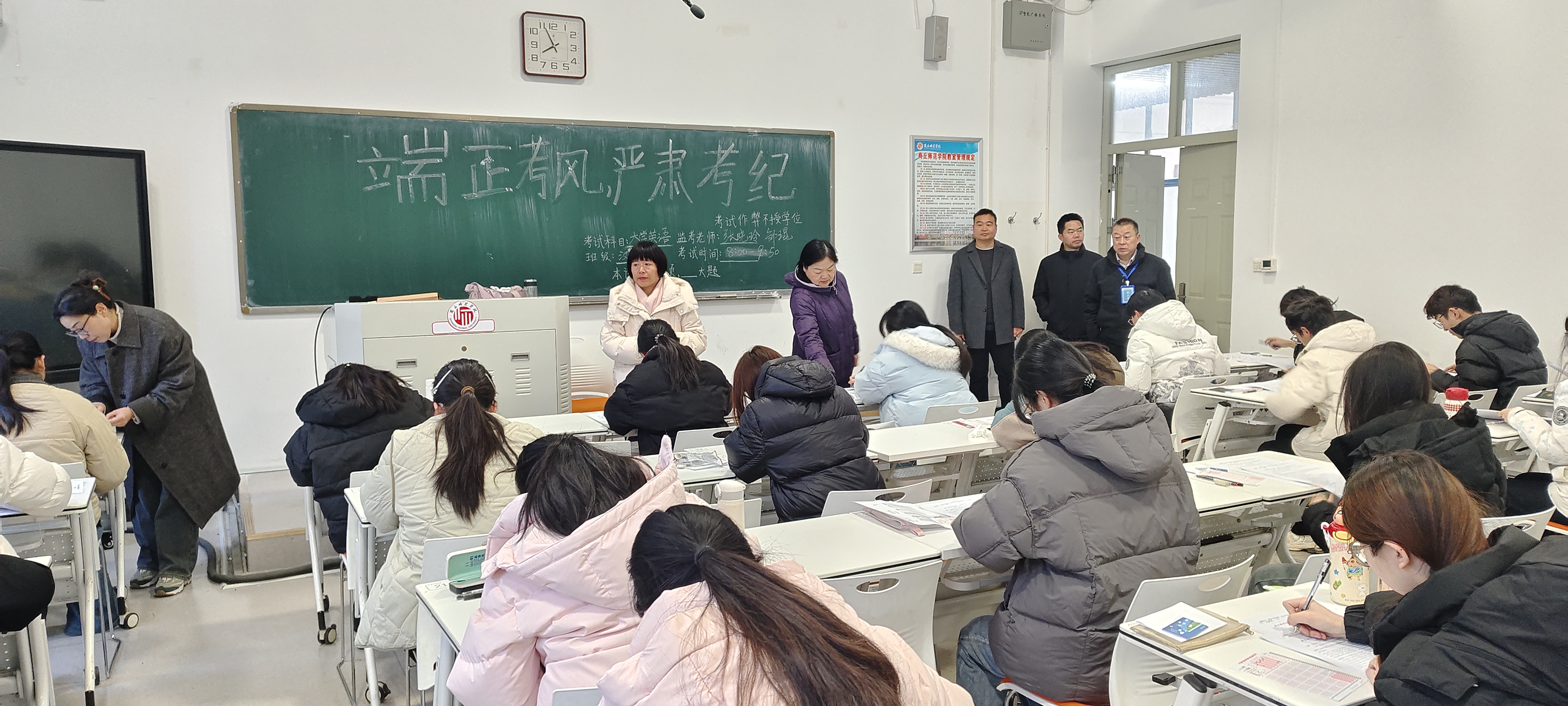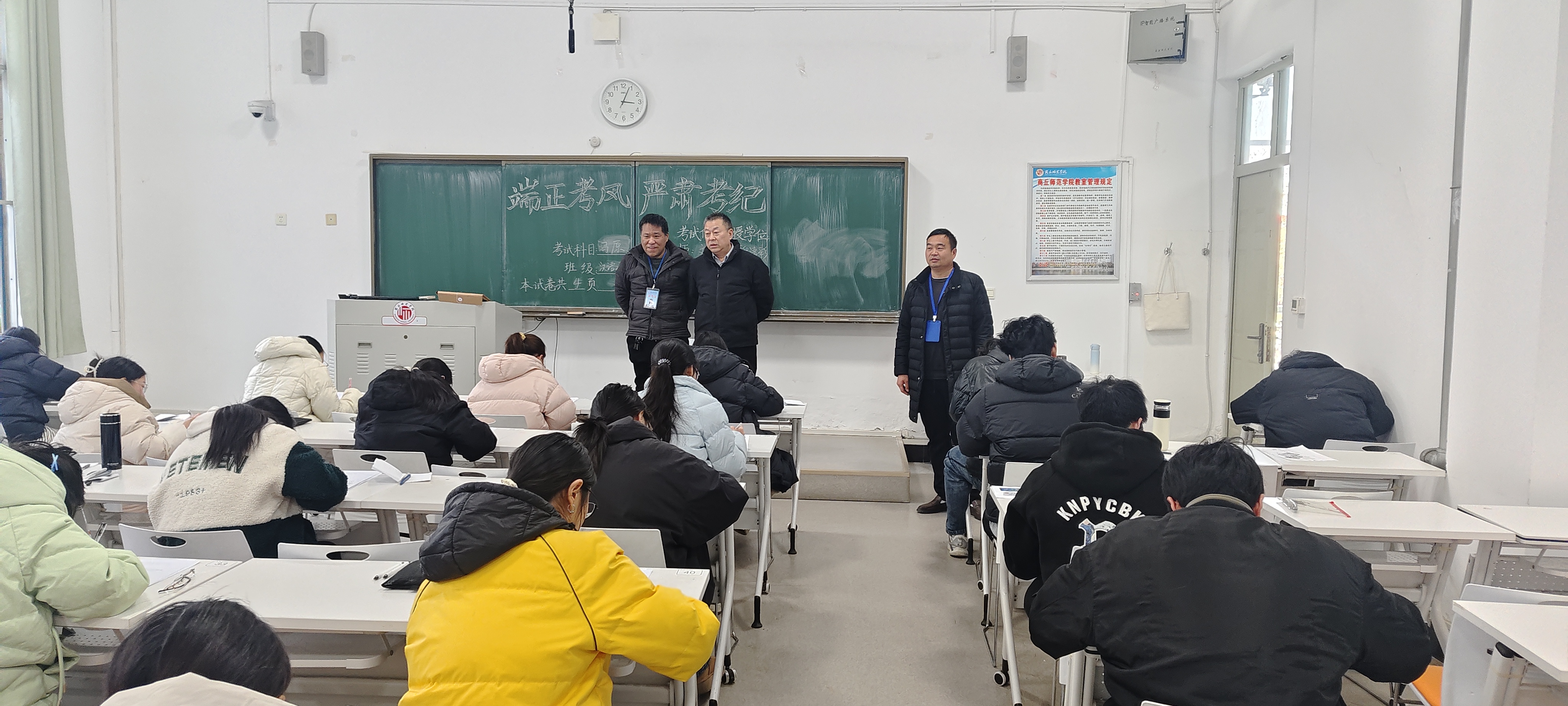巡考过程中,学院领导认真巡查了各考场的考试组织、考场环境、考试秩序以及监考教师履职等情况。从巡查情况看,本次期末考试工作准备充分、管理规范;各考场布置整洁,座位安排合理;监考教师准时到岗,认真负责;学生自觉遵守考试纪律,专注答题,考场秩序井然,整体考风考纪状况良好。