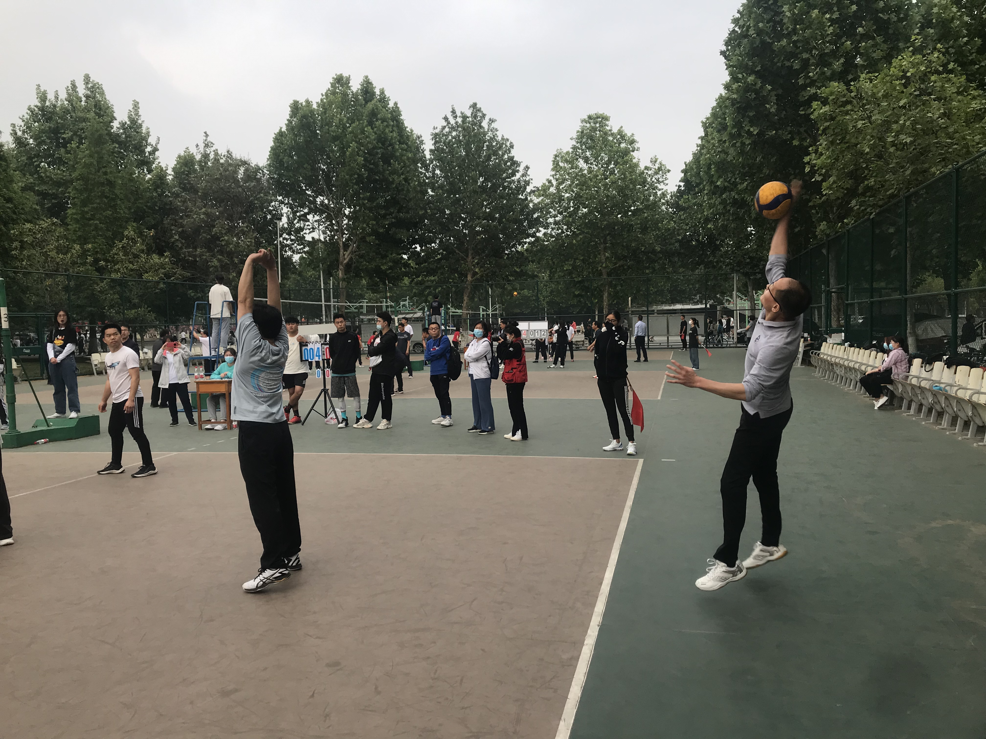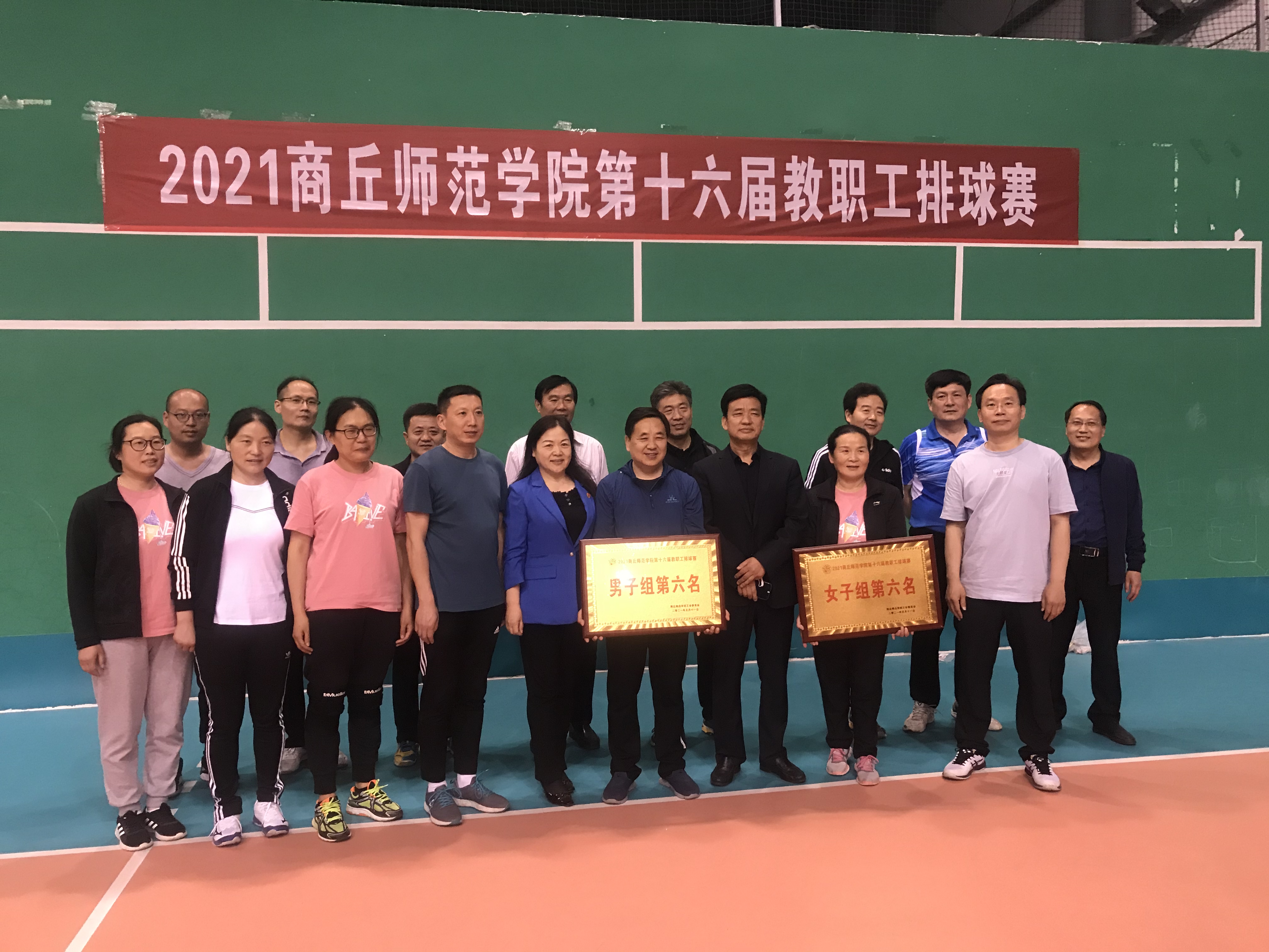 Beat365官网男女队员在赛场上精神饱满,发球、传球、扣球、拦网等各种绝技展现得淋漓尽致,经过激烈角逐,男女队双双获得第六名的好成绩,展示了Beat365官网教职工优秀的排球水平和良好的精神风貌。
