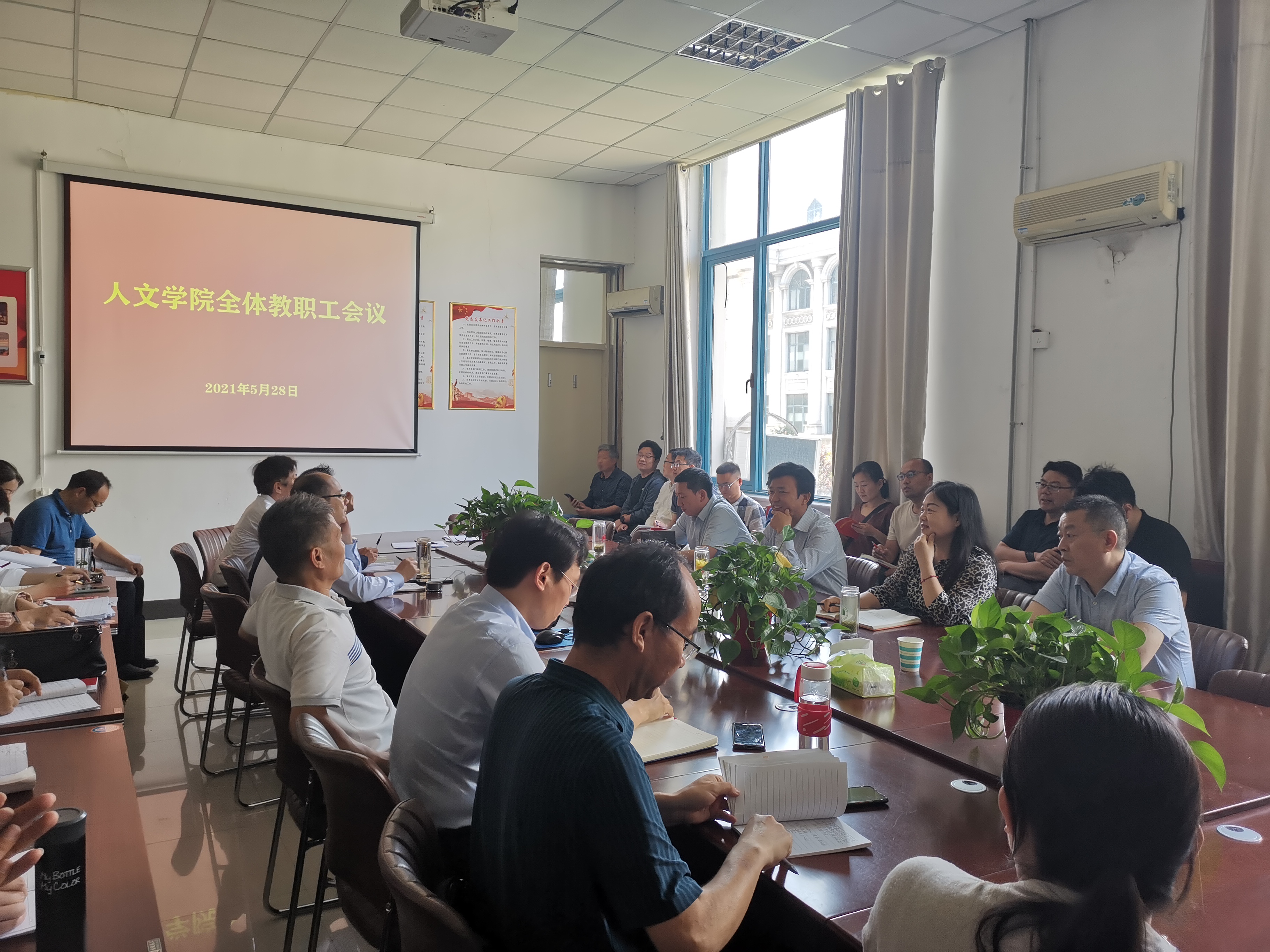 5月28日下午3点,Beat365官方网站在梁园校区汉梁楼208会议室召开全体教职工会议。Beat365官方网站院长高建立、党委书记陈晓明、副院长李卫军、冯志伟及全体教职工参会,会议由陈晓明书记主持。