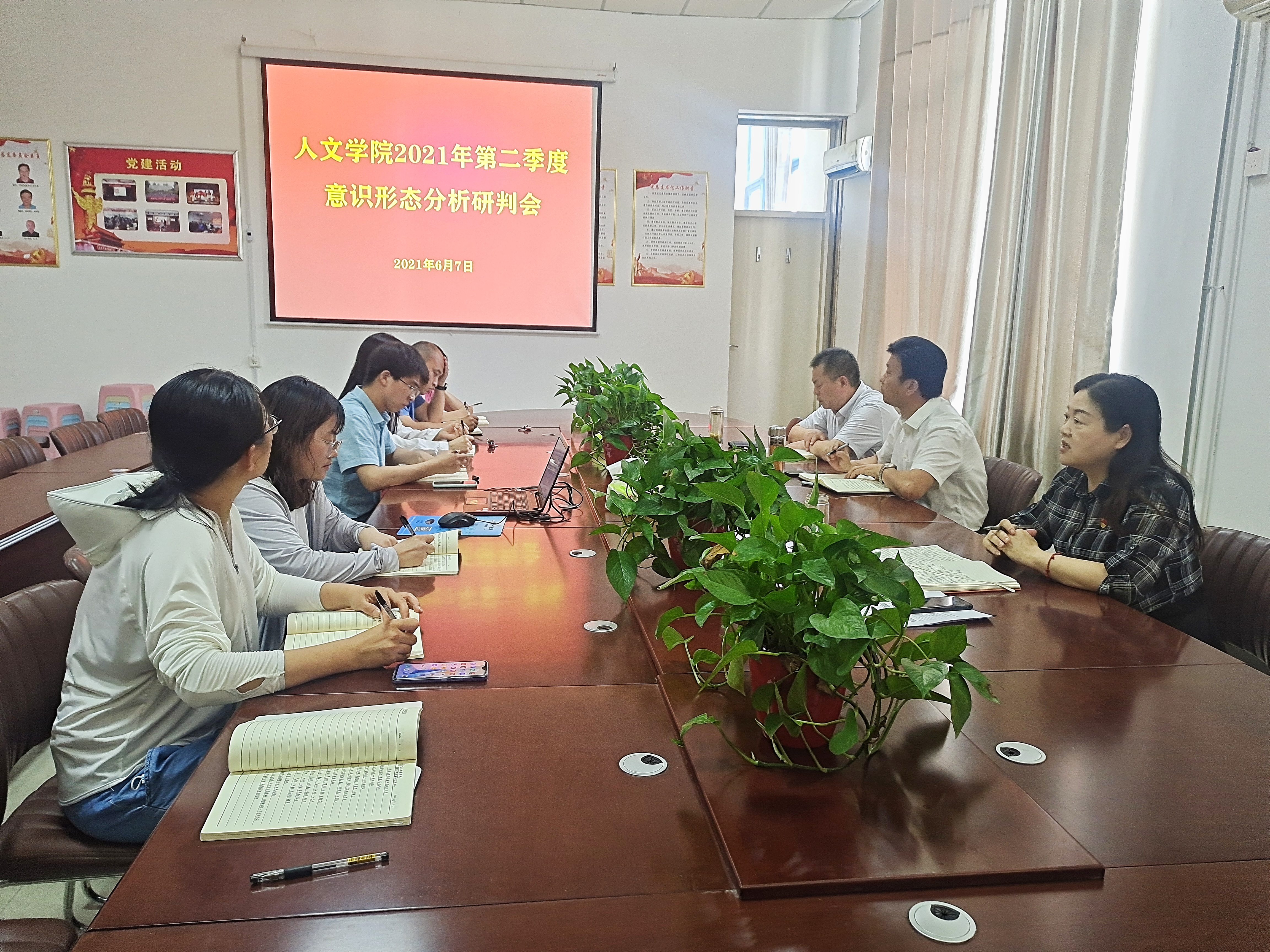 6月7日下午,Beat365官方网站在梁园校区汉梁楼208会议室召开2021年第二季度意识形态分析研判会,院党委书记陈晓明、院长高建立、副院长冯志伟、各支部书记、教师代表及全体辅导员参加了会议,会议由陈晓明主持。