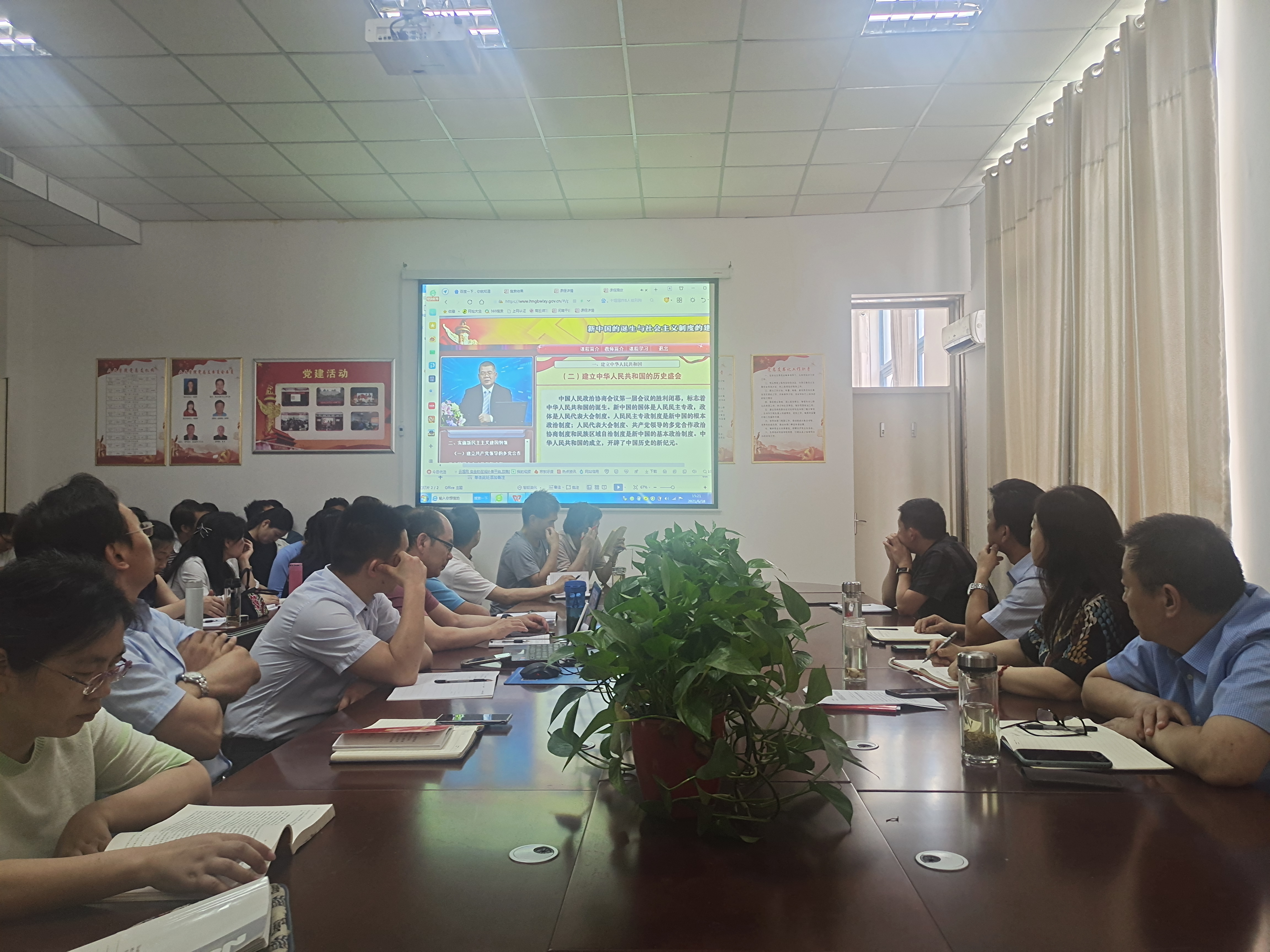 会上,全体教师共同观看了由中央党校博士生导师陈述主讲的“新中国的诞生与社会主义制度的建立 ”专题视频课程,深刻认识到中华人民共和国的成立,是中国有史以来最伟大的事件,它证明了中国以自己独特的革命理论,经验和实践,丰富发展了马克思列宁主义。同时,社会主义制度的建立也为我国走出一条中国特色社会主义新道路奠定了坚实的基础。
