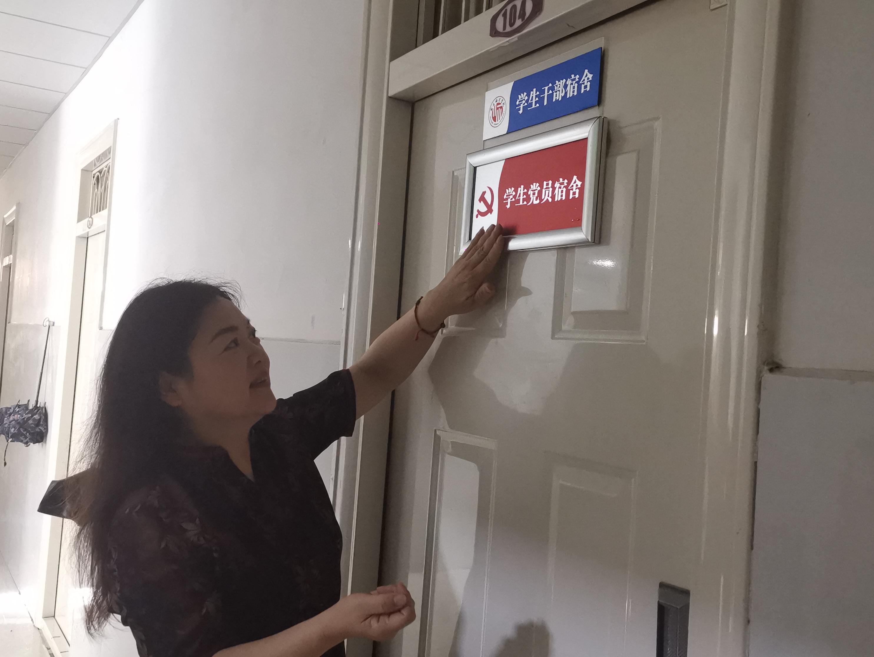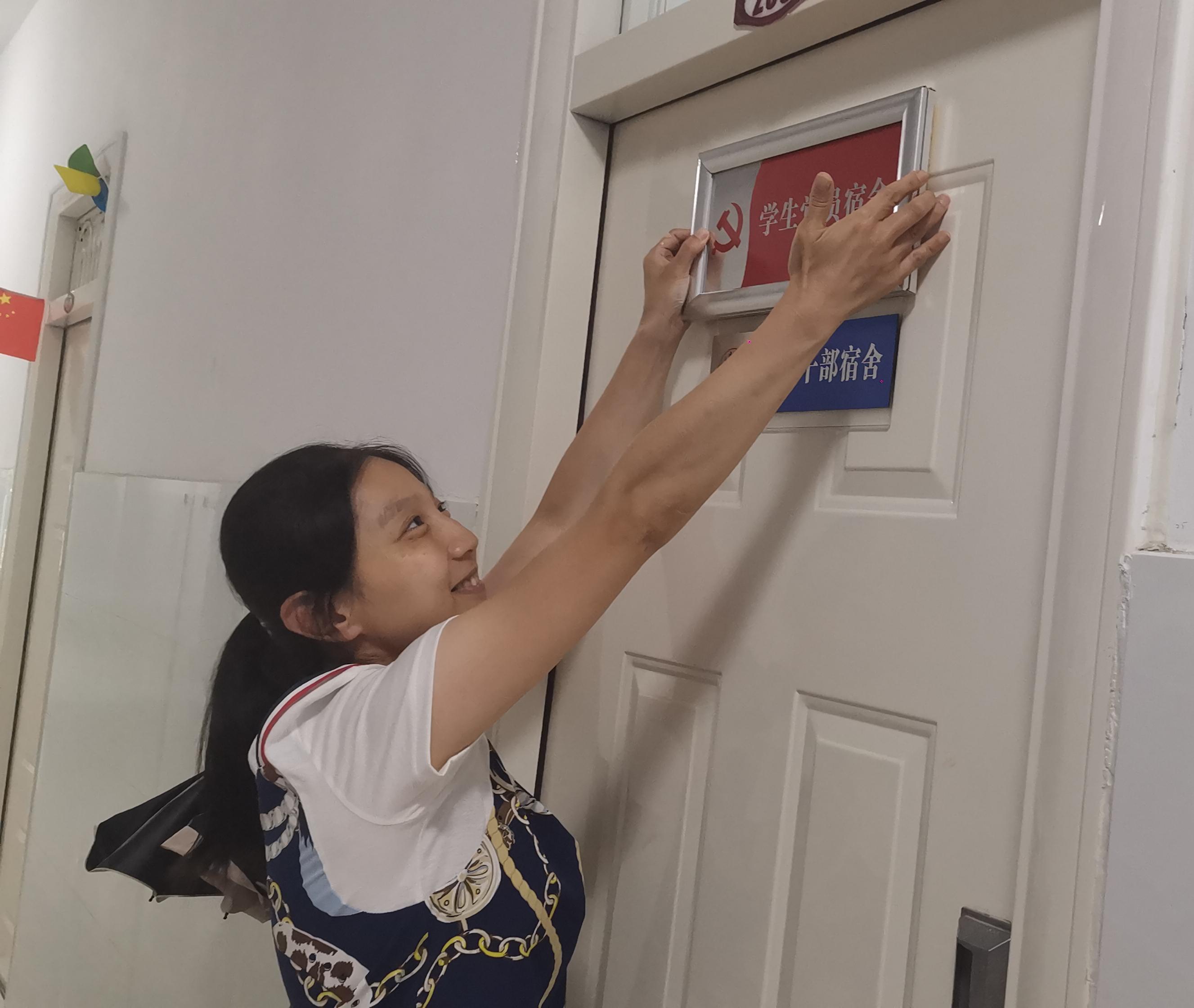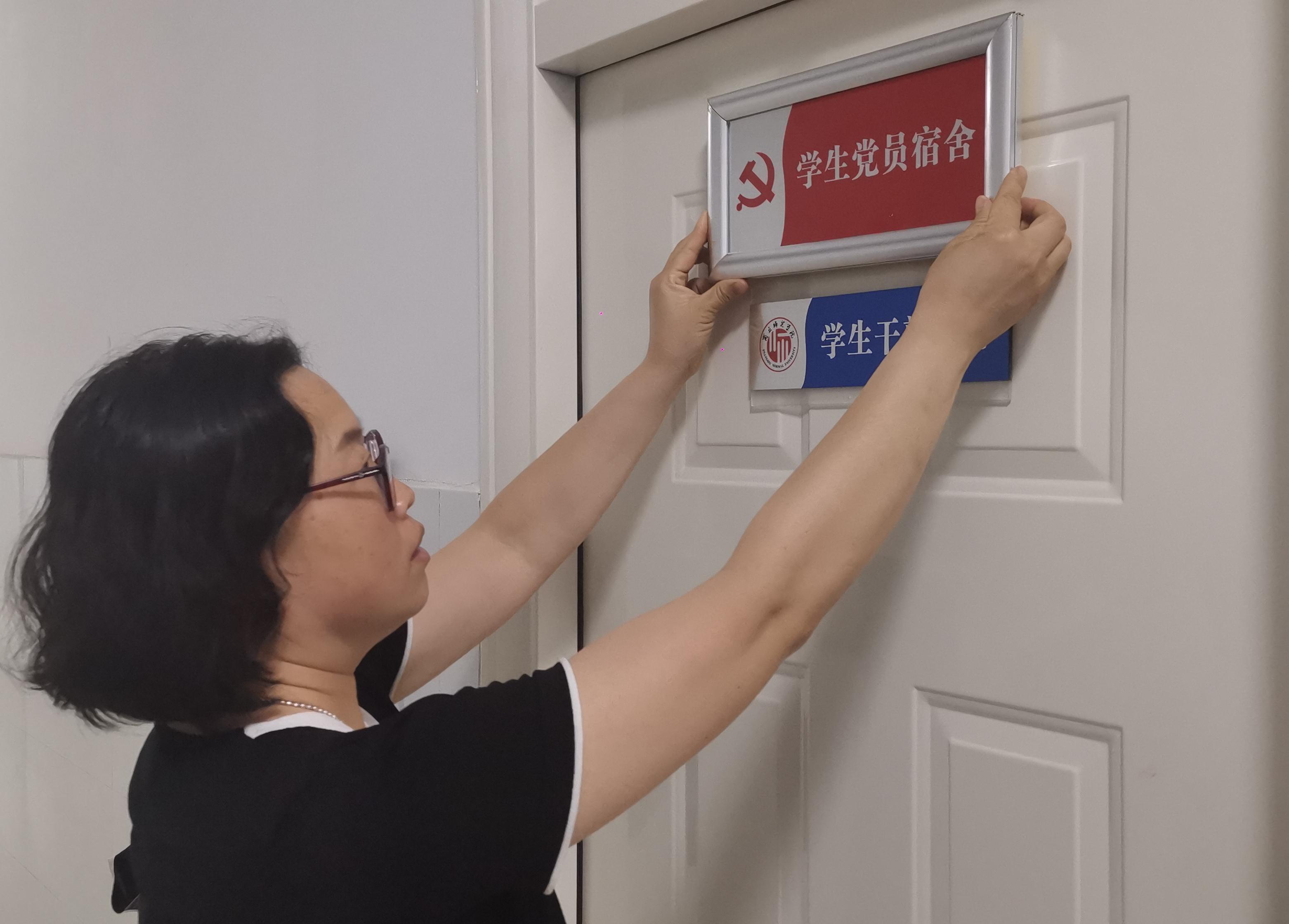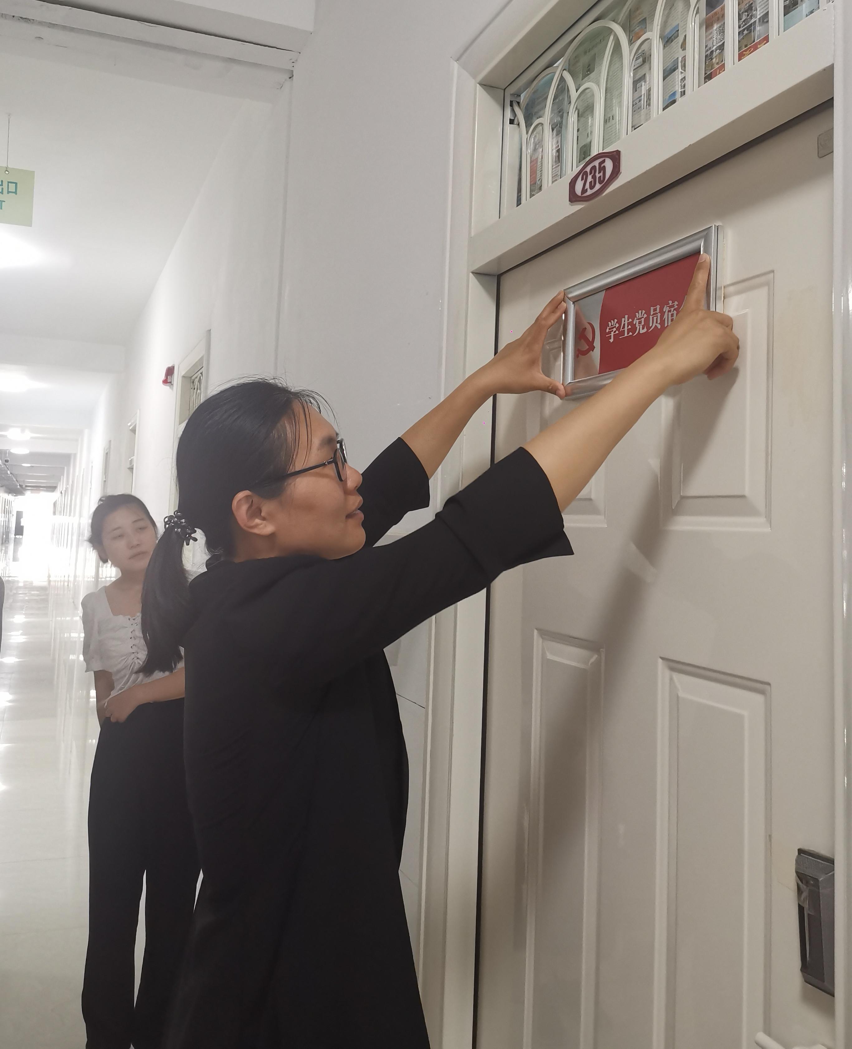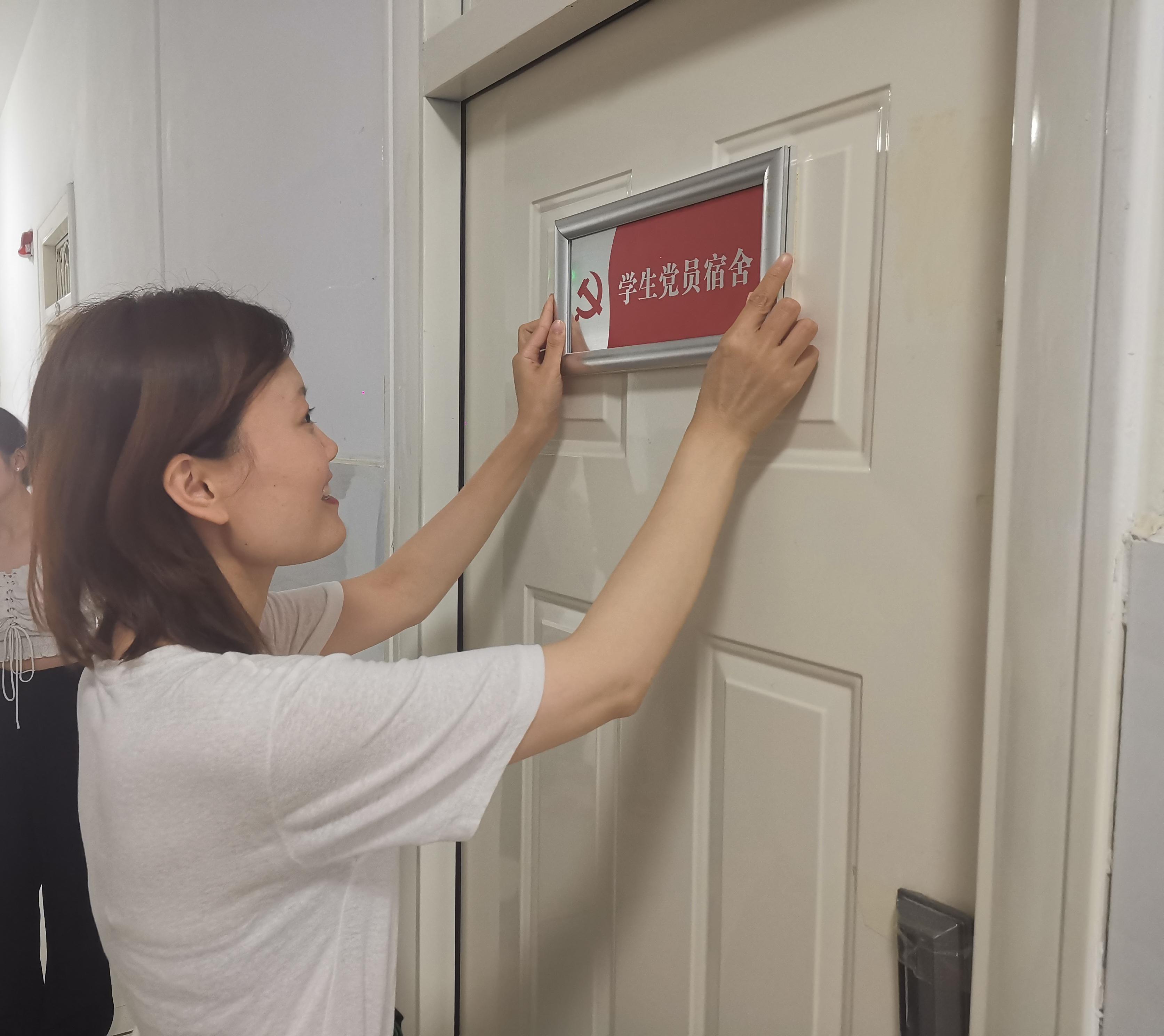 辅导员为各个党员宿舍进行挂牌