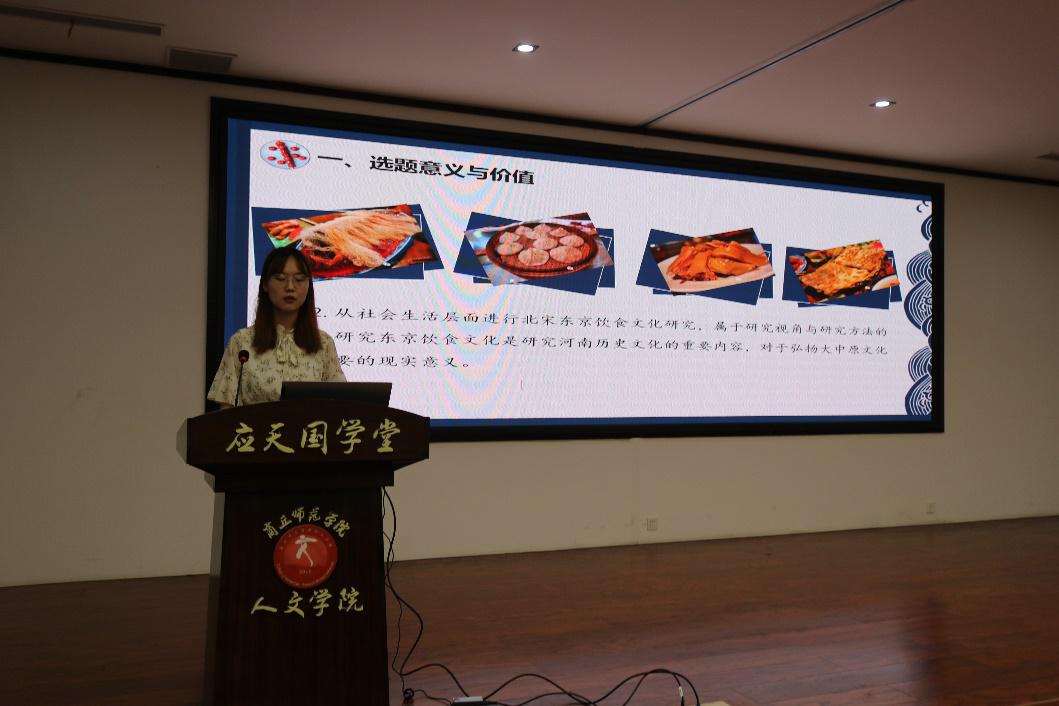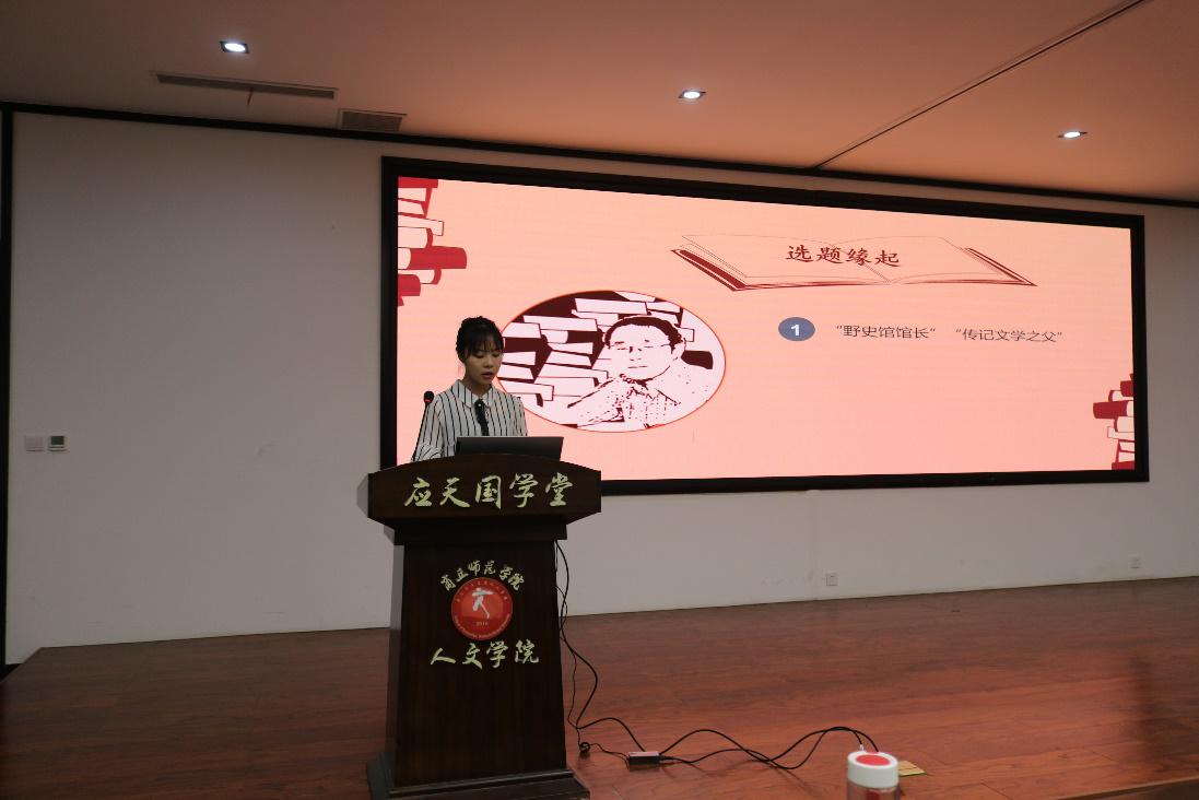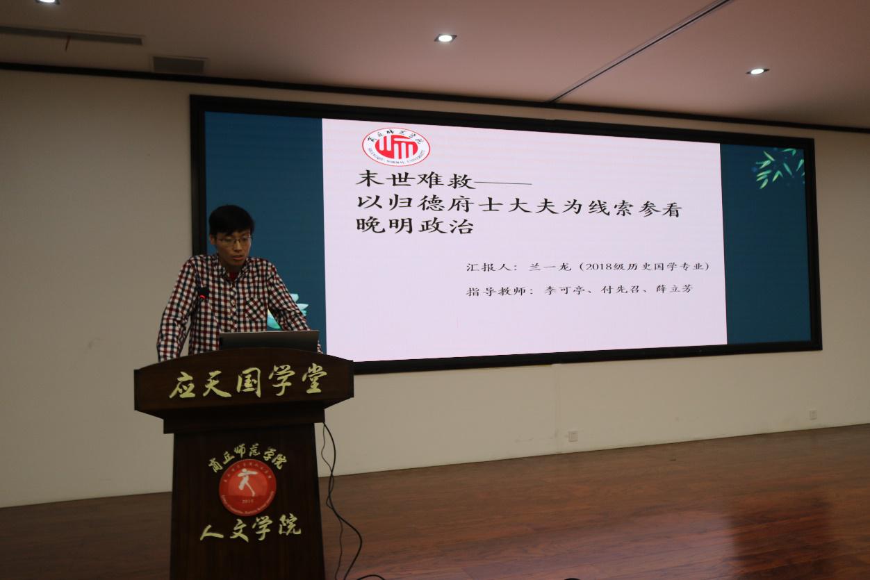 活动第三环节“学年论文汇报”中,2018历史国学班学生兰一龙、胡荣光、李榕炜、张欣怡分别作了《未世难救——以归德府士大夫为线索参看晚明政治》《从先秦的天命思想看儒家的心性论》《北宋东京饮食文化研究》《“争千秋,不争一时”——刘绍唐与<传记文学>》的学年论文汇报。指导教师薛立芳、李可亭、付先召、史新恒对论文进行一一点评,指出其优缺点,并对学年论文选题、写作方法等问题给出建议。其中兰一龙同学的论文围绕商丘地区士大夫的人生际遇对晚明政局的影响进行深入探究,全文41万余字,凸显了扎实深厚的历史学科素养,对历史学专业学生的培养起到示范引领作用。