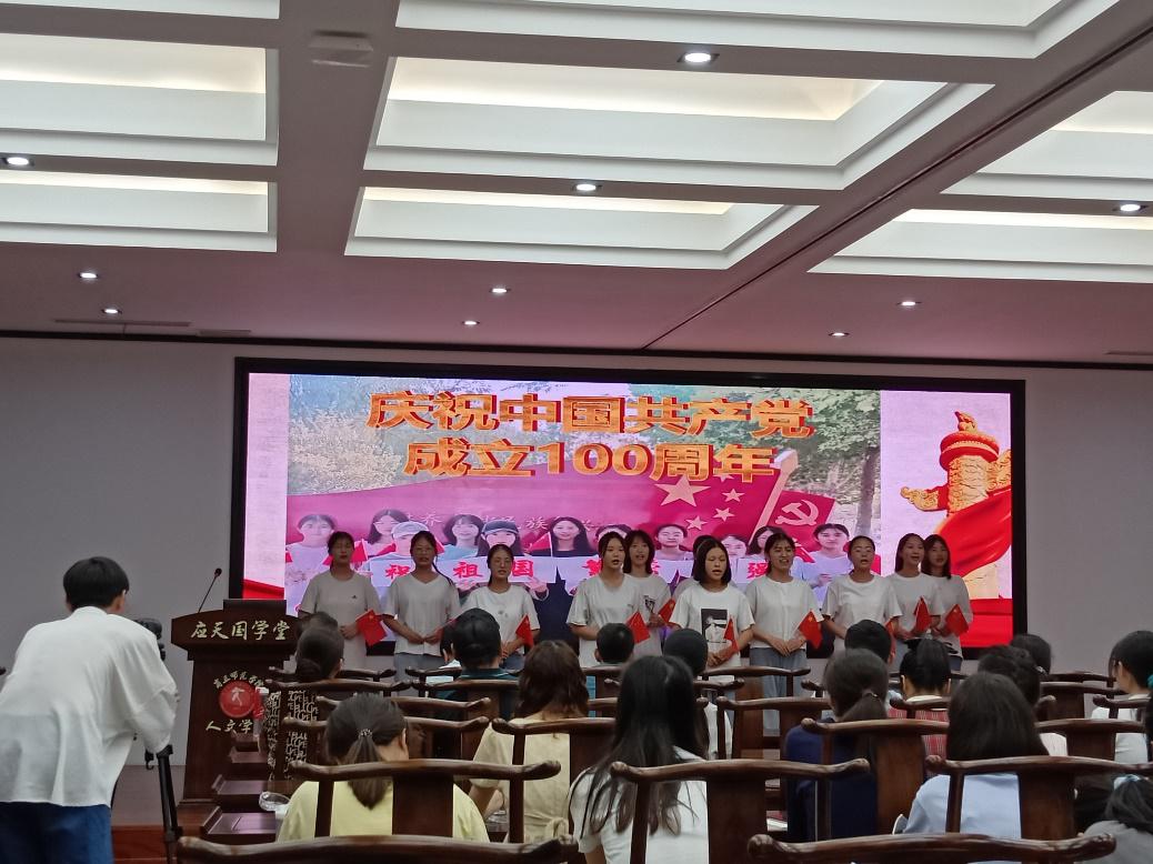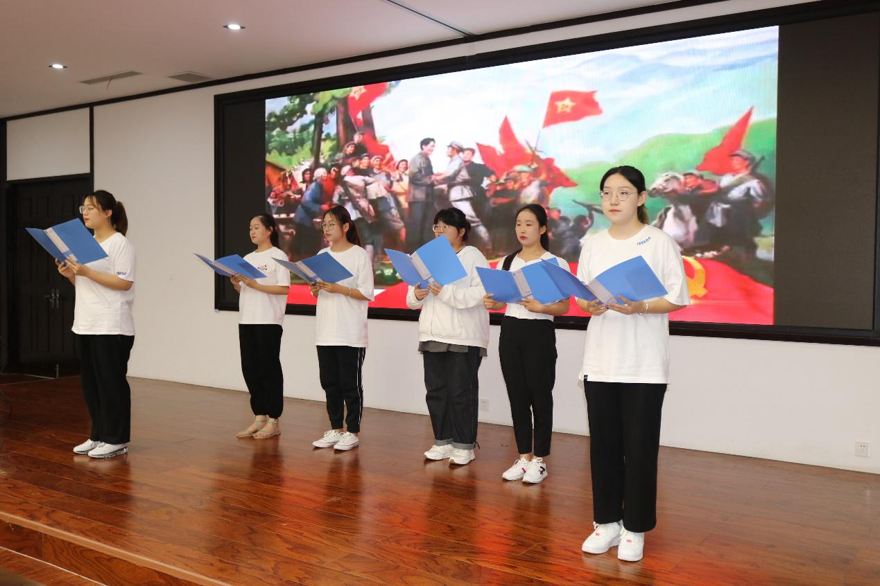 在第二环节“红色经典诵读”中, 2020级历史国学班学生展示了《致敬青春》《红船从南湖起航》《星星之火,可以燎原》三部作品,同学们声情并茂、慷慨激昂地诵读,将红色经典中的革命精神与坚定信仰生动再现,铿锵有力的语言将红色基因注入到每一个学子的心灵深处。
