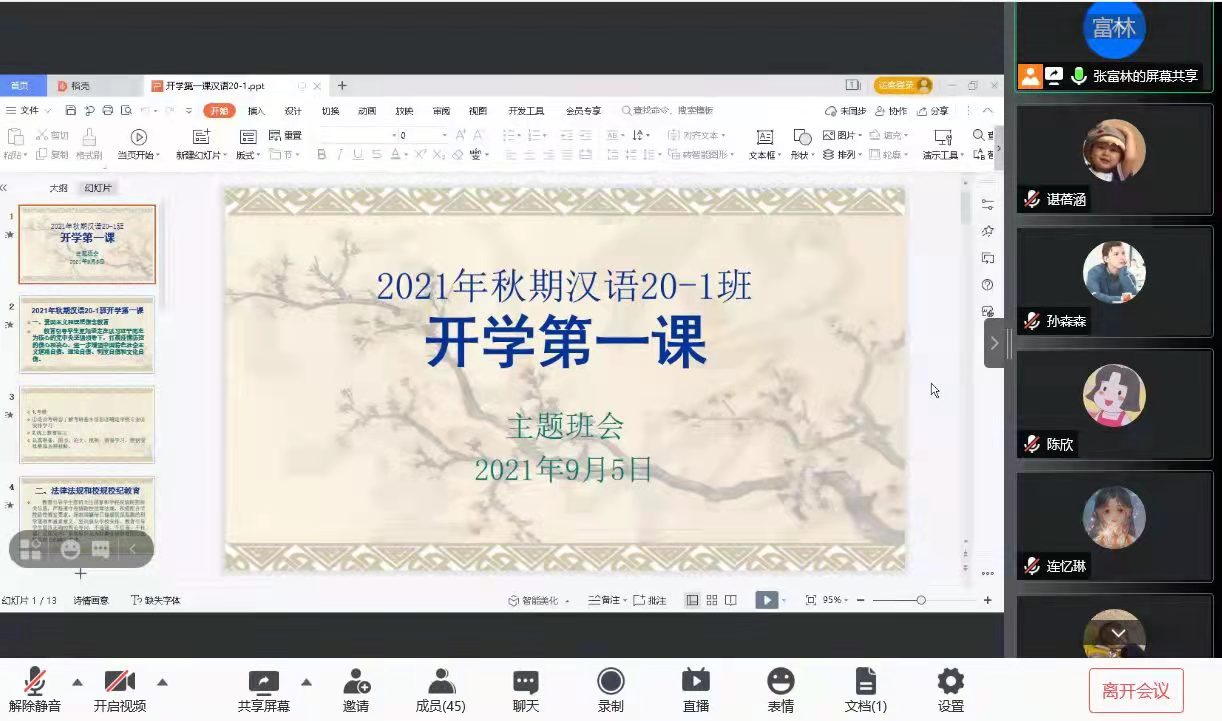 为响应国家疫情防控期间“停课不停教,停课不停学”的教学工作要求,帮助新生同学们尽快融入新学期新环境,同时促进班风学风建设,营造良好的学期氛围,增强同学们的爱国爱党意识,9月5日晚上,Beat365官方网站在线上召开开学第一课主题活动。
